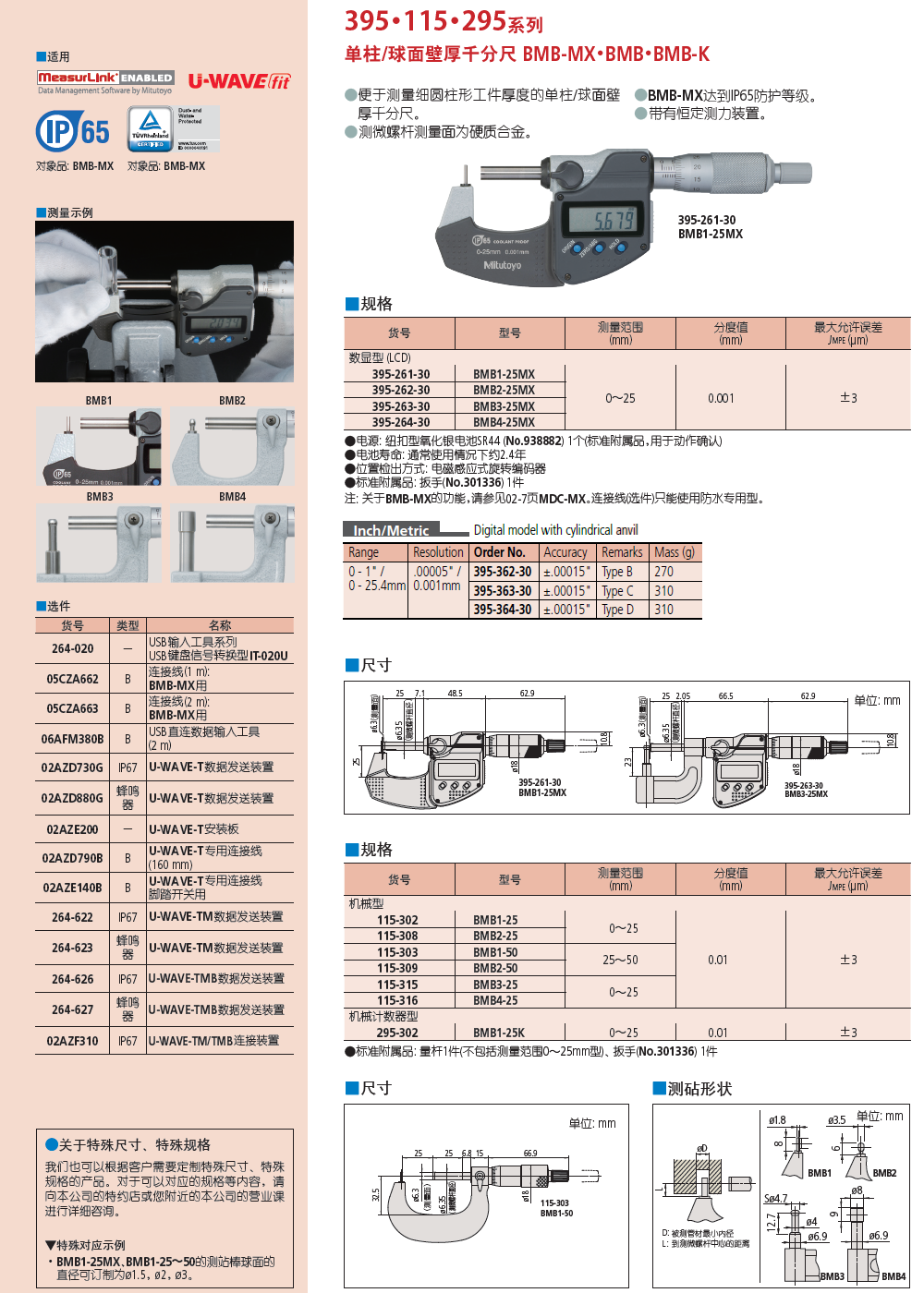395・115・295系列单柱/球面壁厚千分尺 BMB-MX・BMB・BMB-K