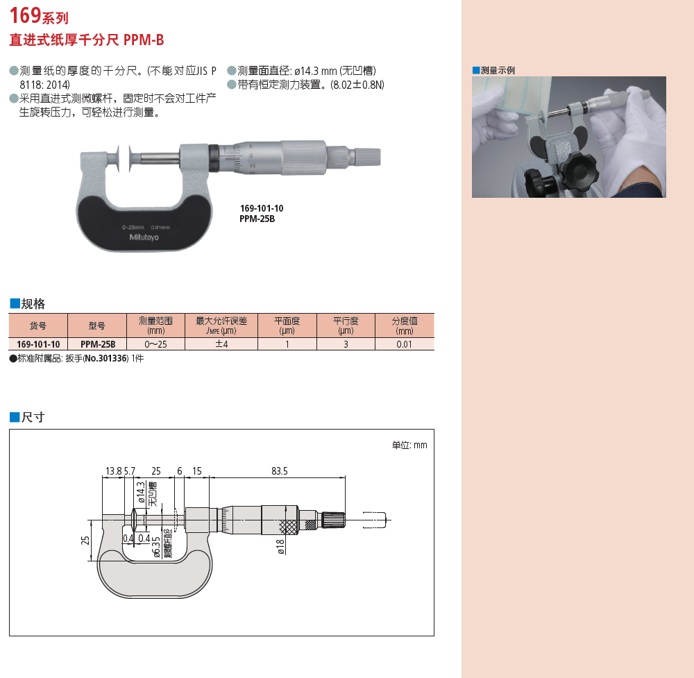 169系列 直进式纸厚千分尺,169-101-10 PPM-25B,