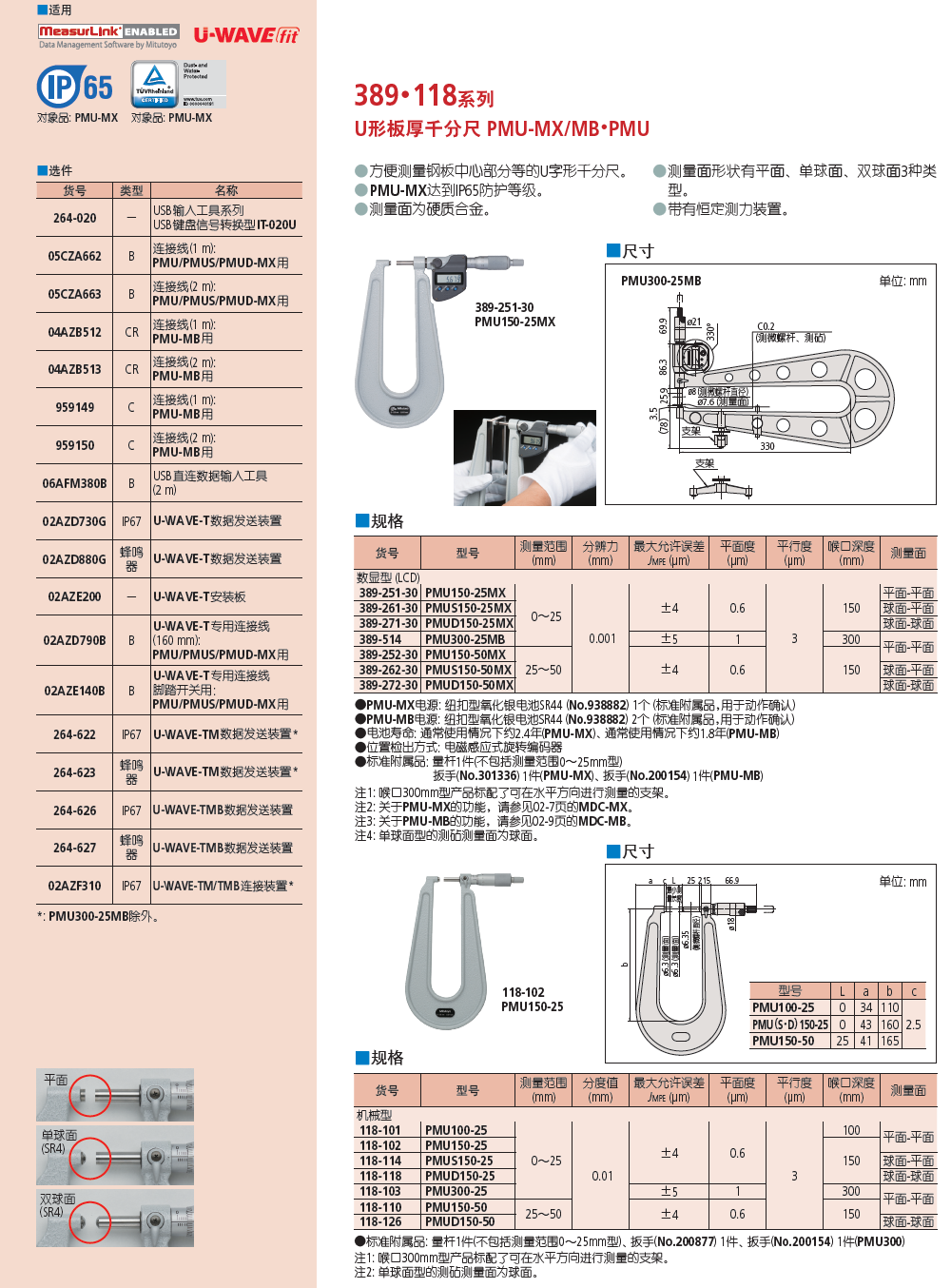 389・118系列U形板厚千分尺 PMU-MX/MB・PMU