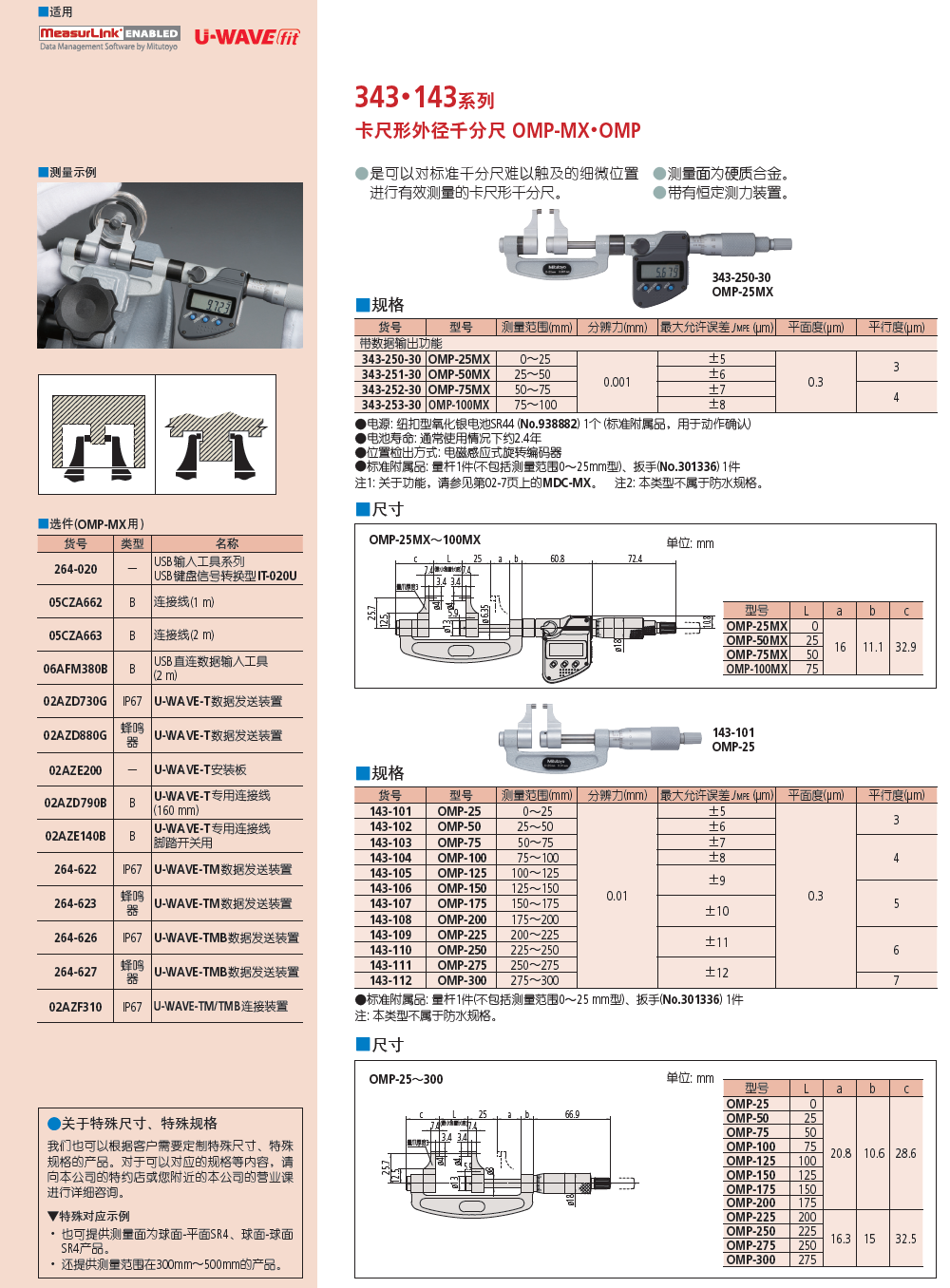 343・143系列卡尺形外径千分尺 OMP-MX・OMP