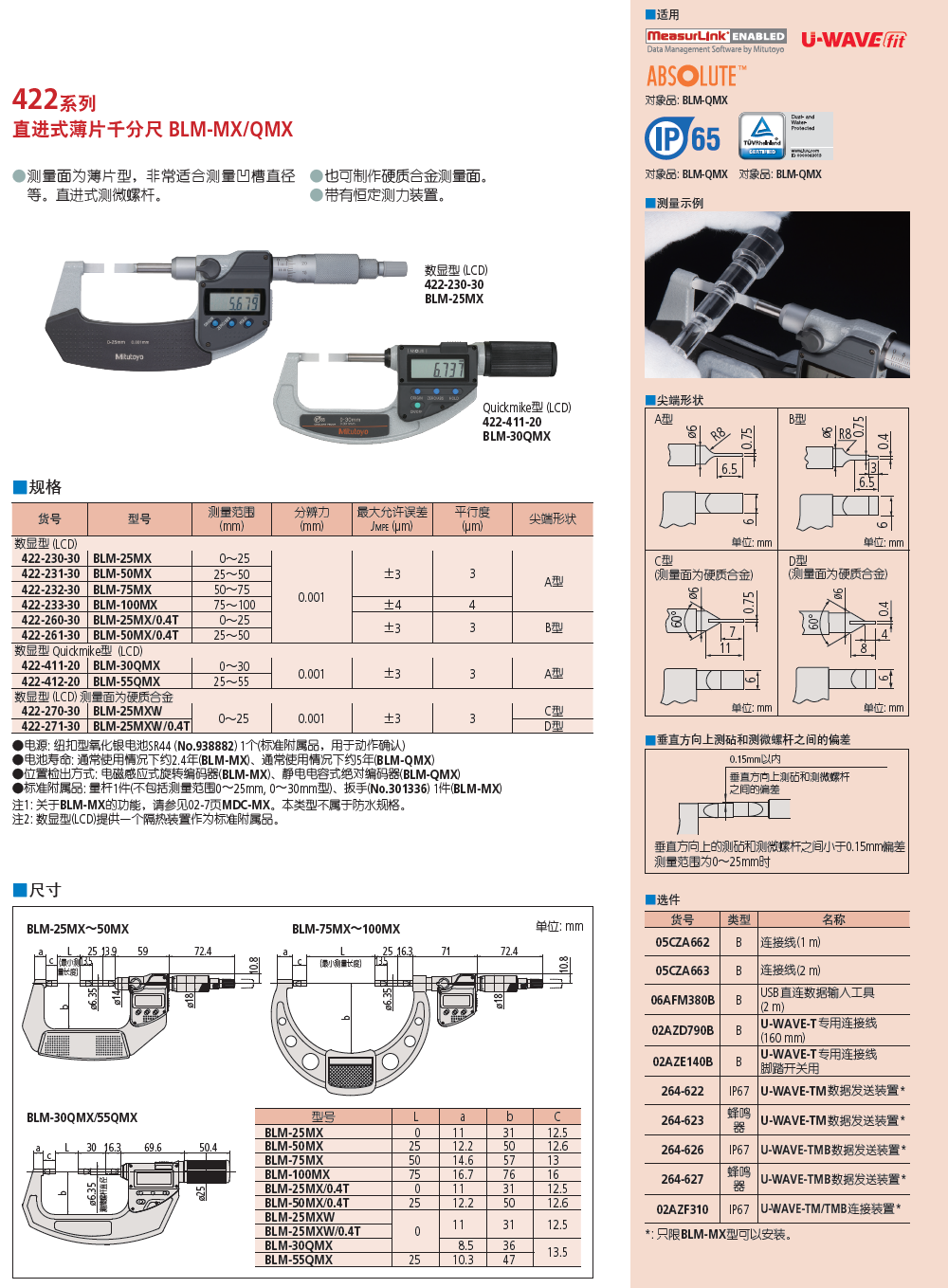 422系列直进式薄片千分尺 BLM-MX/QMX
