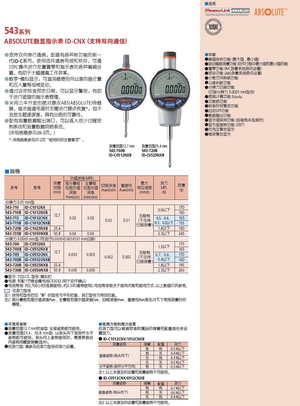 543系列ABSOLUTE数显指示表 ID-CNX (支持双向通信)