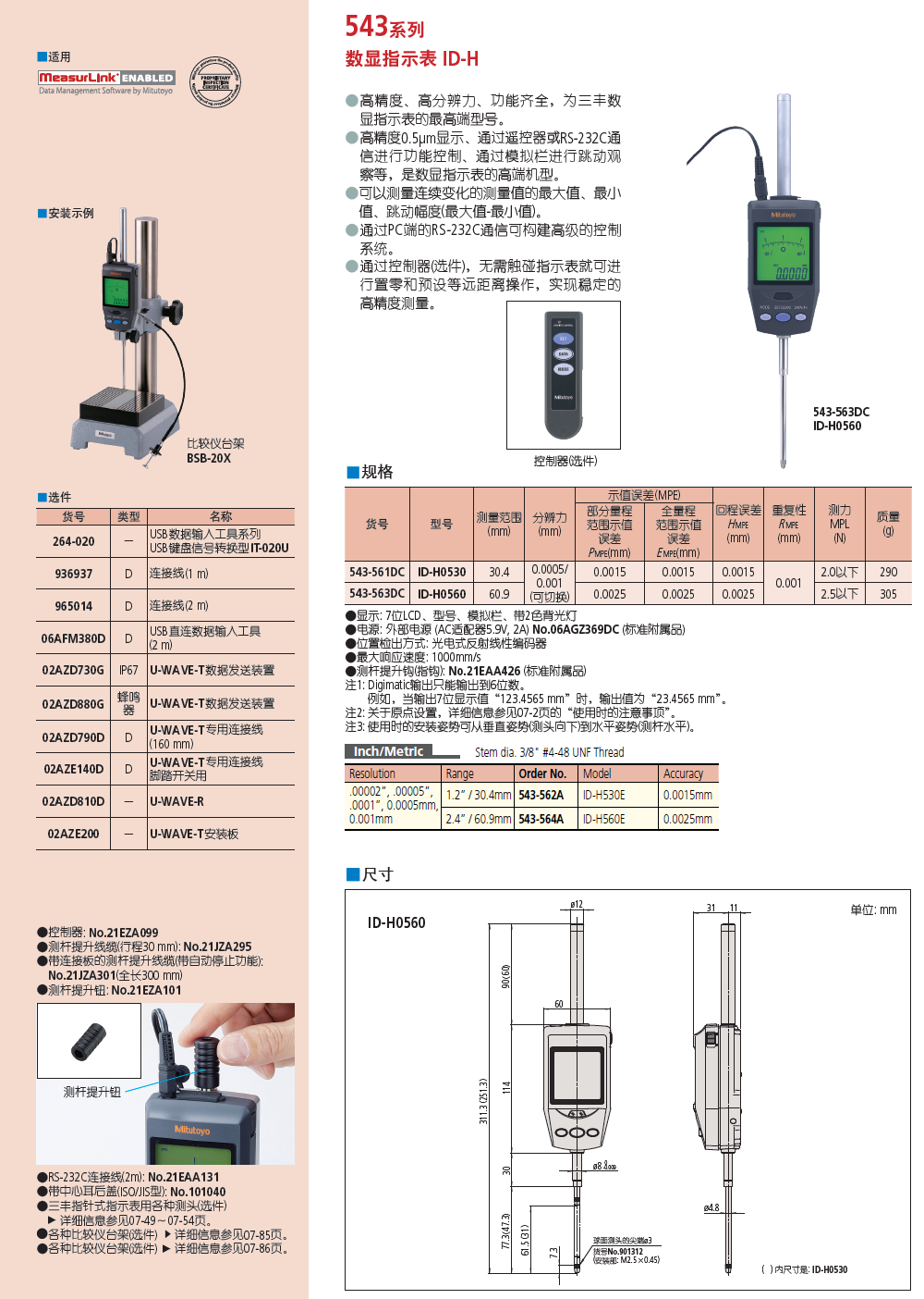 三丰mitutoyo高精度数显万分表543-561DC分辨率0.0005mm高精度数显千分表