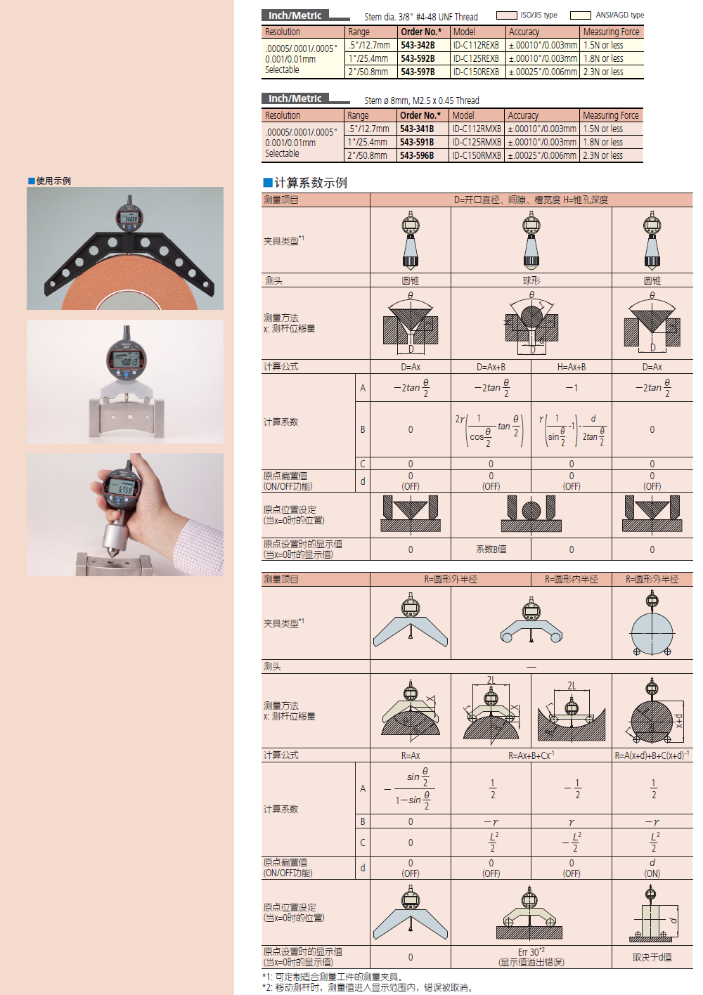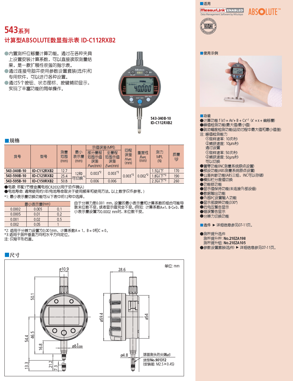 mitutoyo三丰543-340B-10带计算功能数显量表直径千分表半径千分表锥度千分表