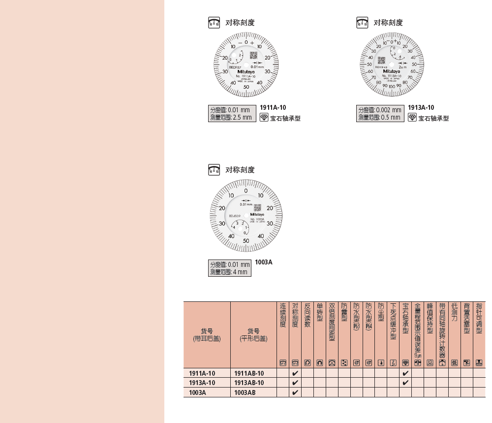 日本三丰1003A小表盘百分表1913A-10小表盘指针千分表1911A-10小百分表
