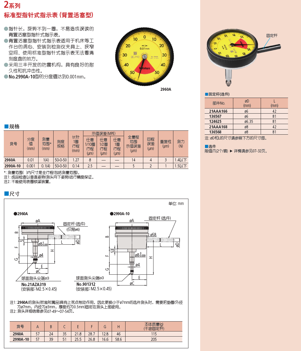 ● No.2990A-10型的分度值达到0.001mm。