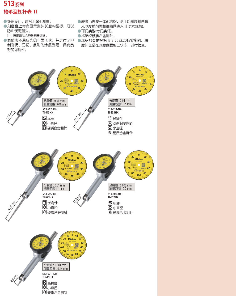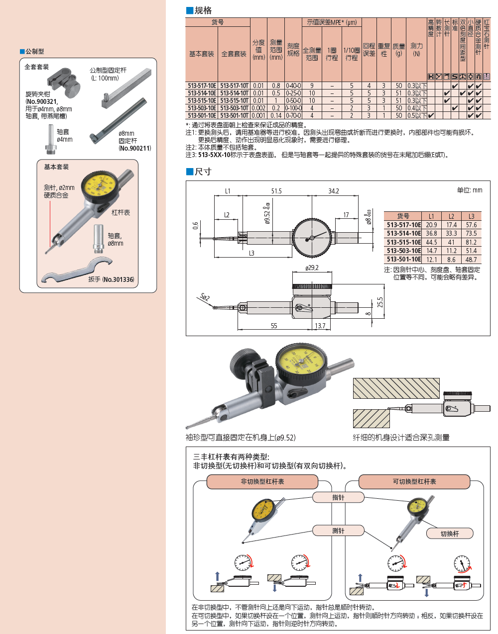 mitutoyo三丰袖珍型杠杆千分表513-503-10E小型杠杆千分表513-501-10T小托表