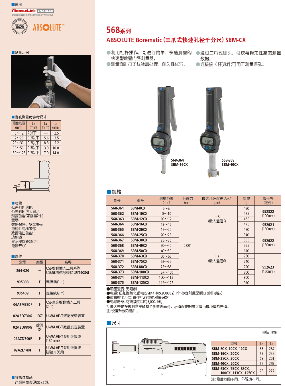 568系列ABSOLUTE Borematic (三爪式快速孔径千分尺) SBM-CX