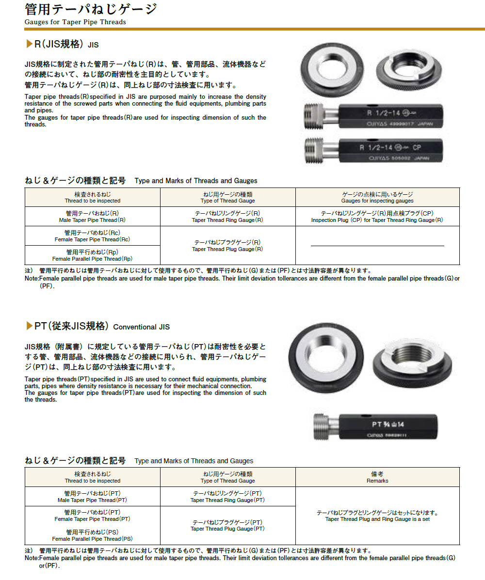 日本ojiyas,ojiyas极限螺纹量规,ojiyas界限螺纹通止规,ojiyas螺纹塞规,ojiyas螺纹环规,英制惠氏管螺纹量规,R、Rp、Rc、BSPT。惠氏锥管螺纹塞规,英制锥管螺纹环规,DIN 2999标准、BS21标准、EN 10226-1/EN 10226-2标准、ISO 7-1/ISO 7-2标准。 |