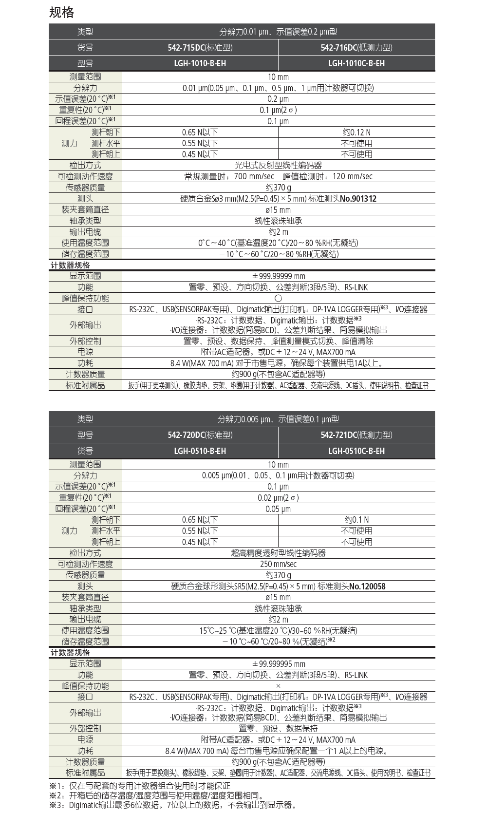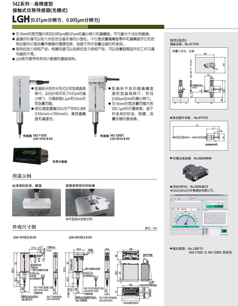 日本mitutoyo三丰超高精度测头0.005μm分辨率542-715DC光栅式位移传感器LGH-1010-B-EH纳米级测头