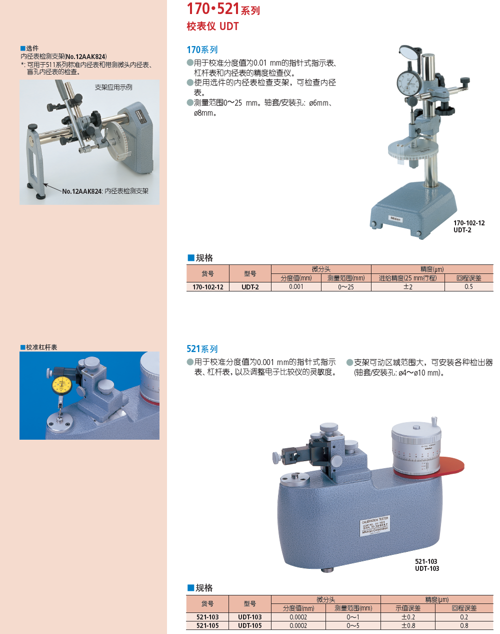 三丰Mitutoyo量表检定仪170-102-12百分表校准仪UDT-103千分表检定仪杠杆表校准仪