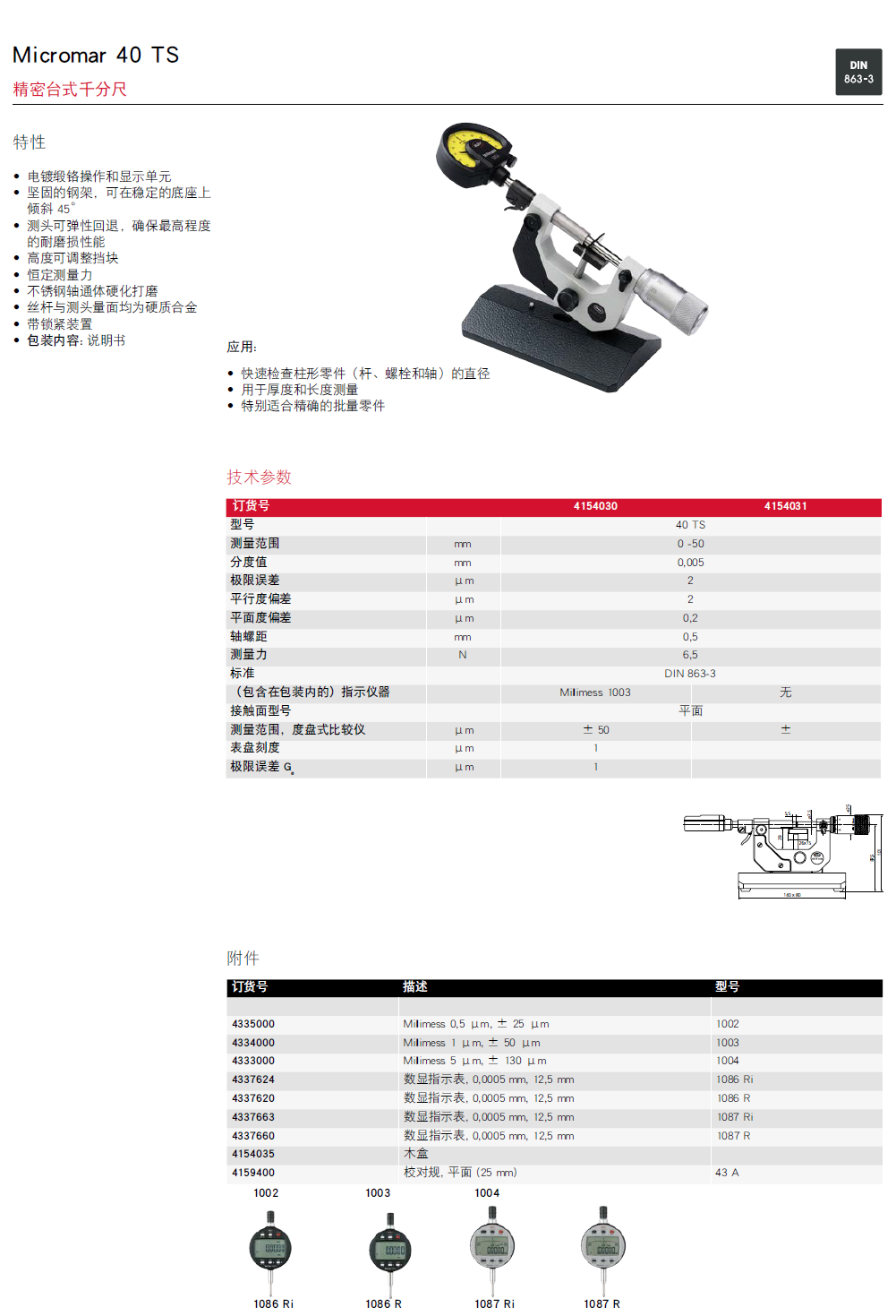 德国Mahr马尔精密台式千分尺Micromar 40 TS快速轴径测量千分尺全检千分尺