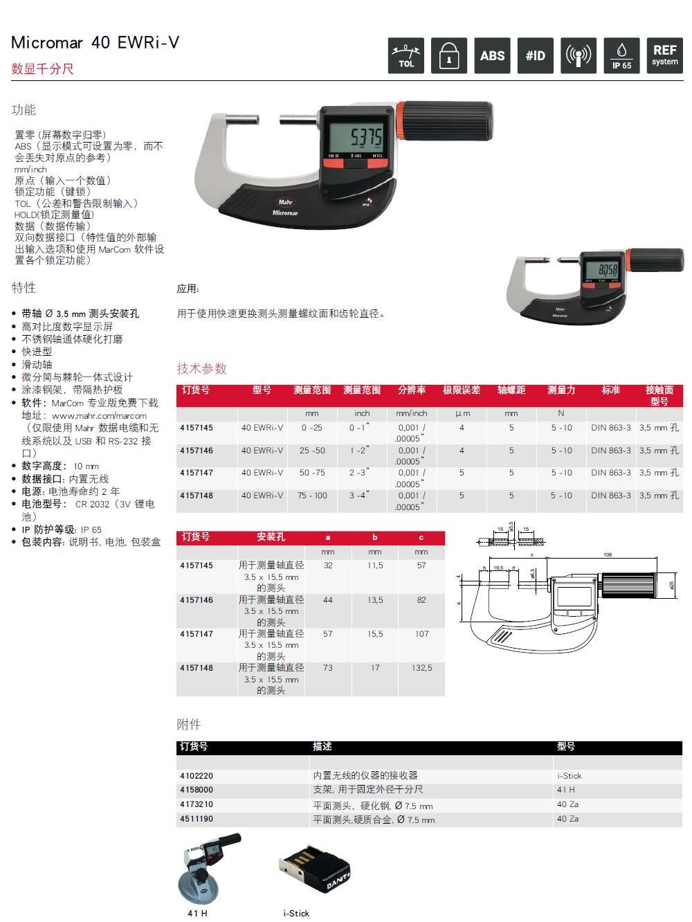 德国MAHR马尔Micromar 40 EWRi 数显千分尺带内置无线传输系统的千分尺