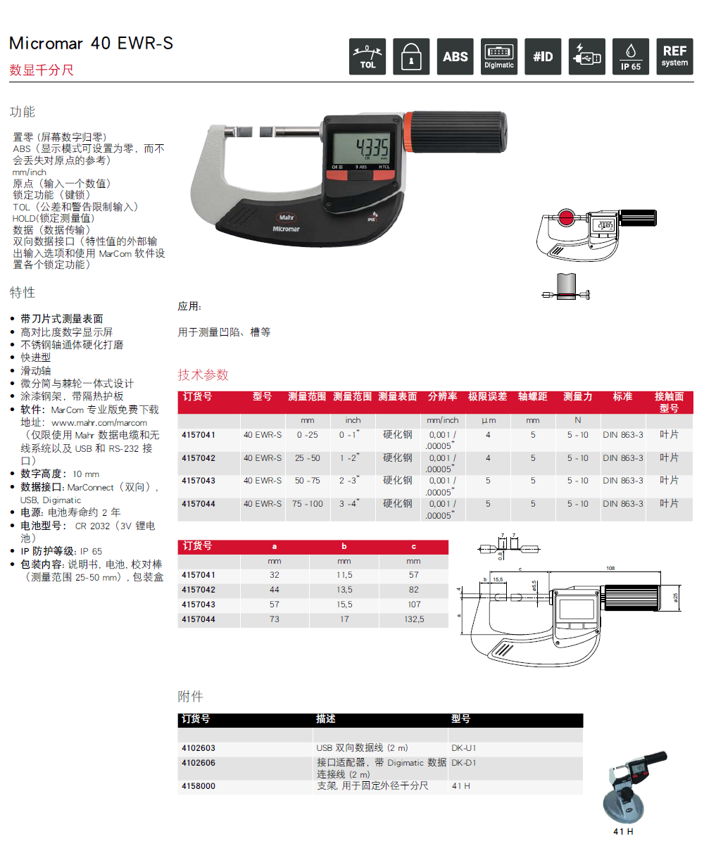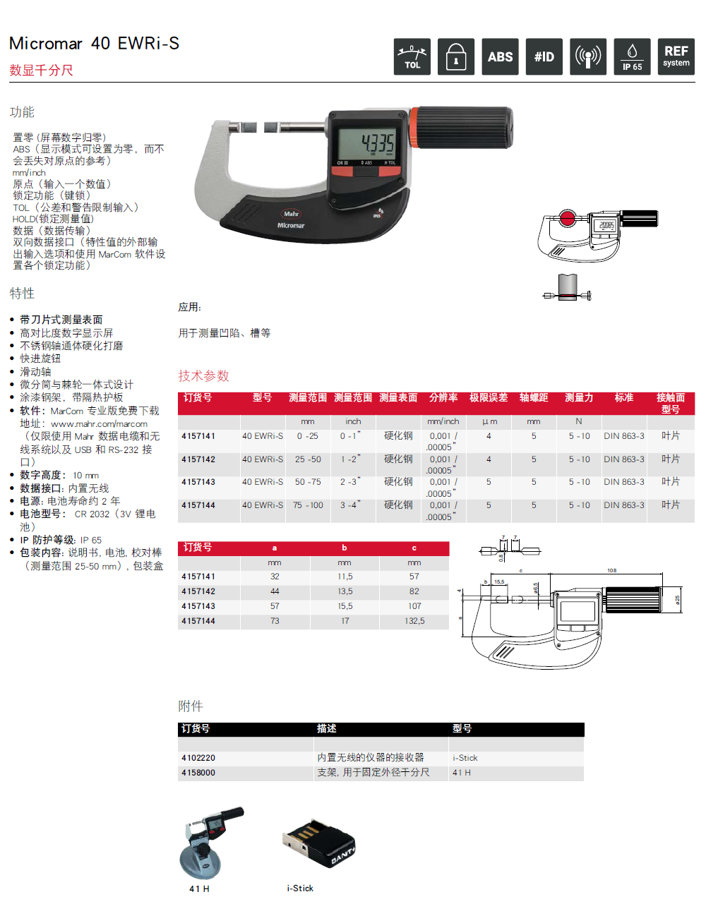 德国MAHR马尔Micromar 40 EWRi 数显千分尺带内置无线传输系统的千分尺
