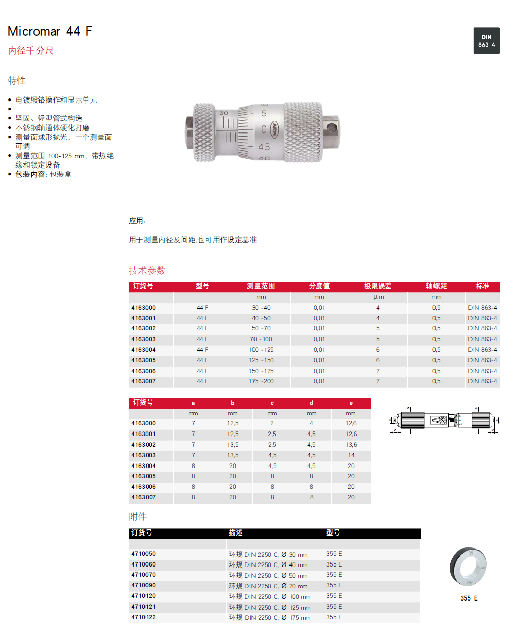 • 测量面球形抛光,一个测量面可调