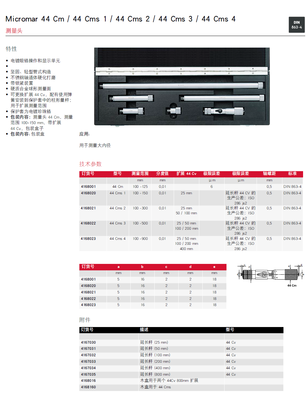 德国MAHR马尔Micromar 44 Cm / 44 Cms 1 / 44 Cms 2 / 44 Cms 3 / 44 Cms 4内径千分尺测量头