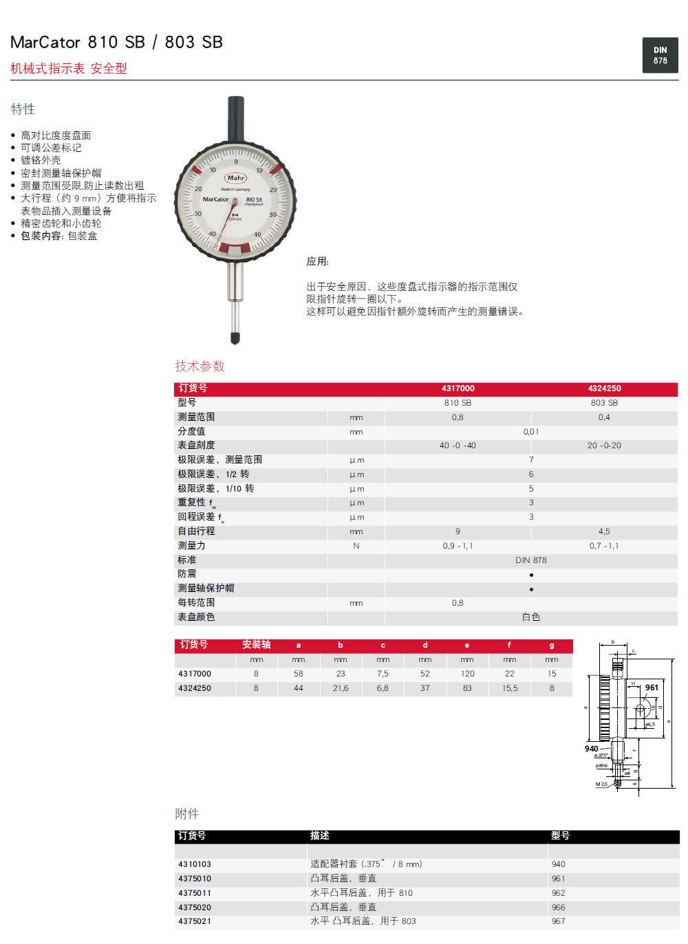 MarCator 810 SB / 803 SB单圈型指针百分表