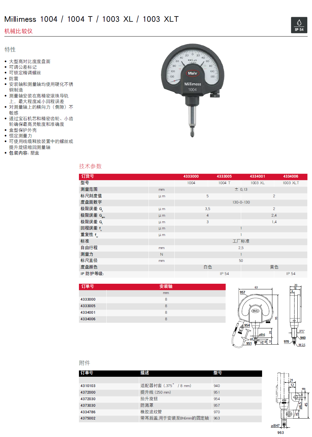 Millimess 1004 / 1004 T / 1003 XL / 1003 XLT机械比较仪