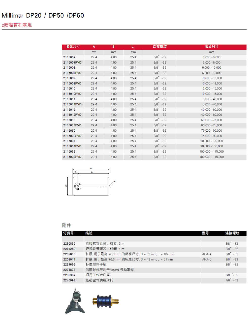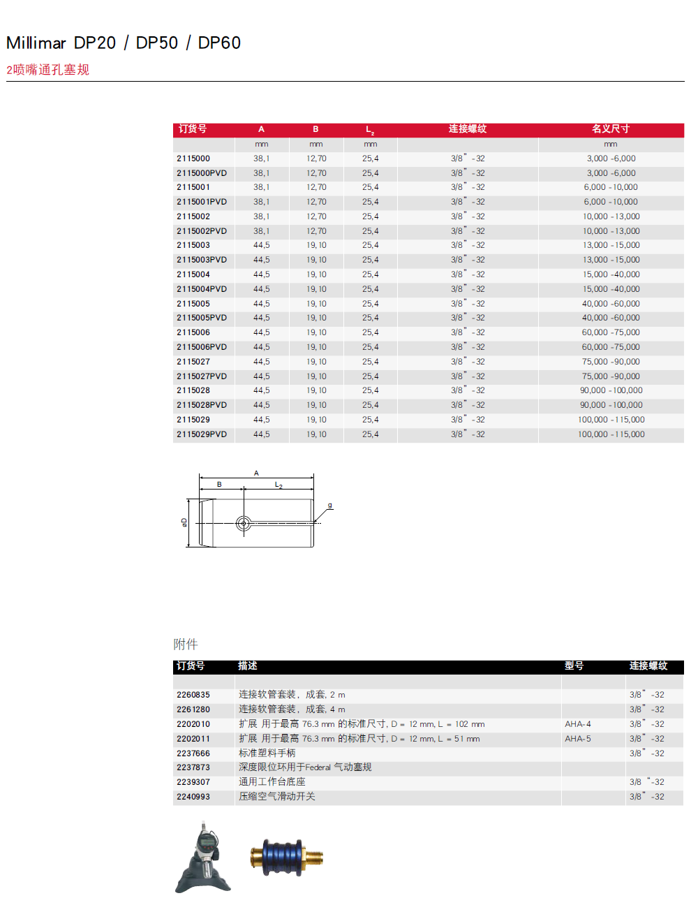Millimar DP20 / DP50 / DP60 2喷嘴通孔塞规& 2喷嘴盲孔塞规