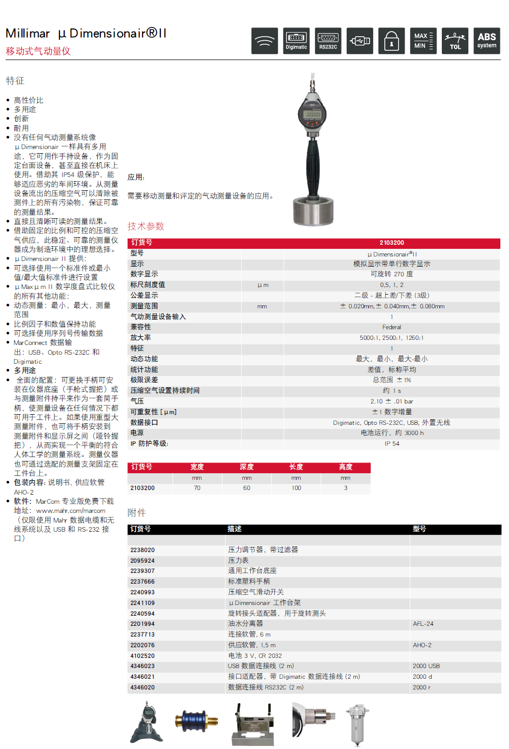 德国MAHR马尔Millimar μDimensionair II移动式气动量仪手持式气动塞规气动内径测量仪