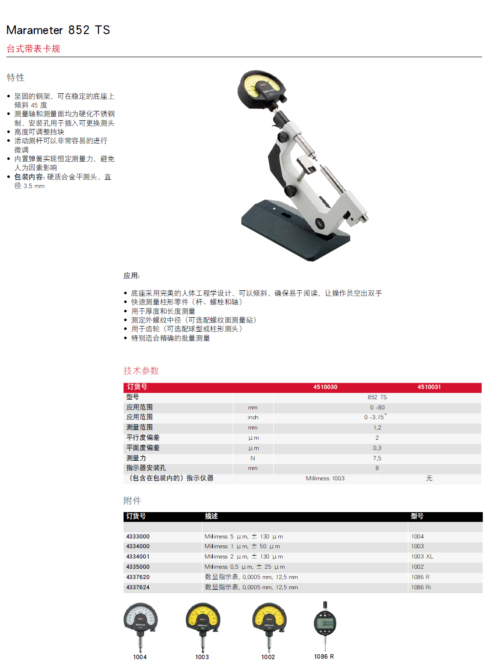 德国马尔Mahr台式带表卡规Marameter 852 TS快速批量检测GO NOGO测量