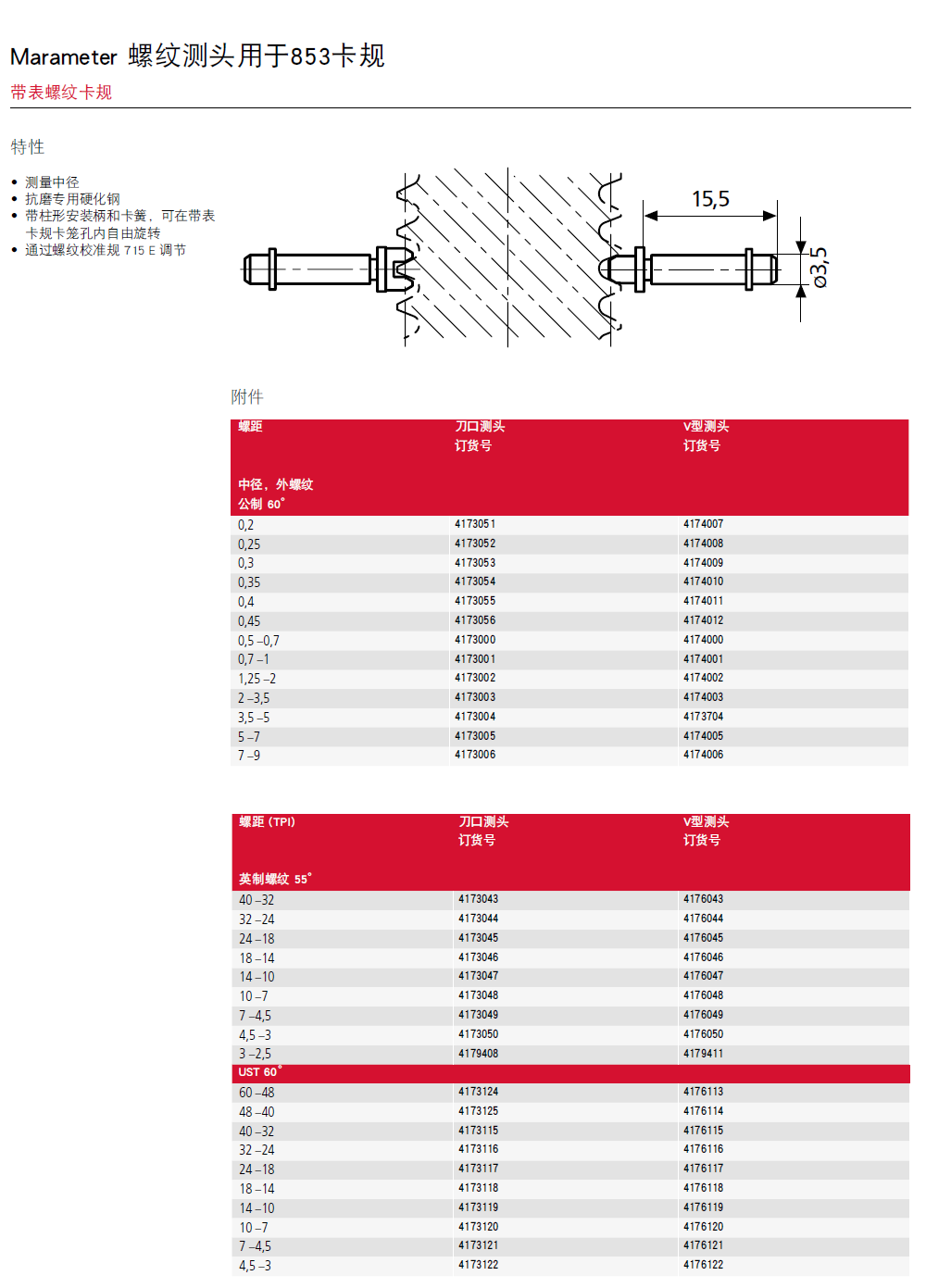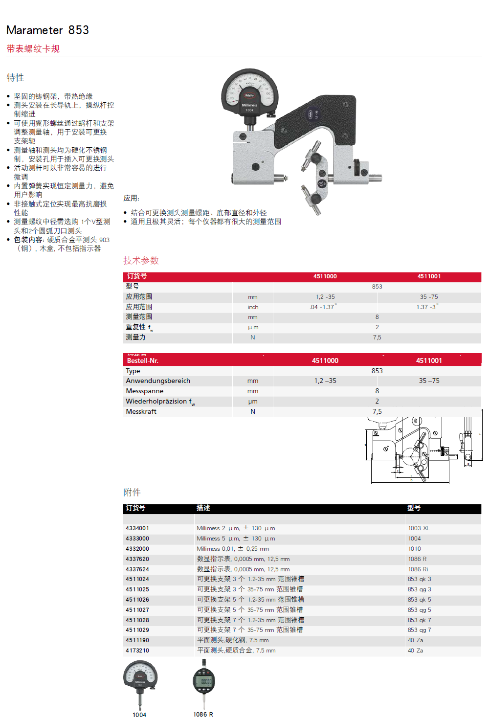 德国Mahr螺纹中径卡规马尔螺纹卡规Marameter 853丝攻丝锥带表卡规