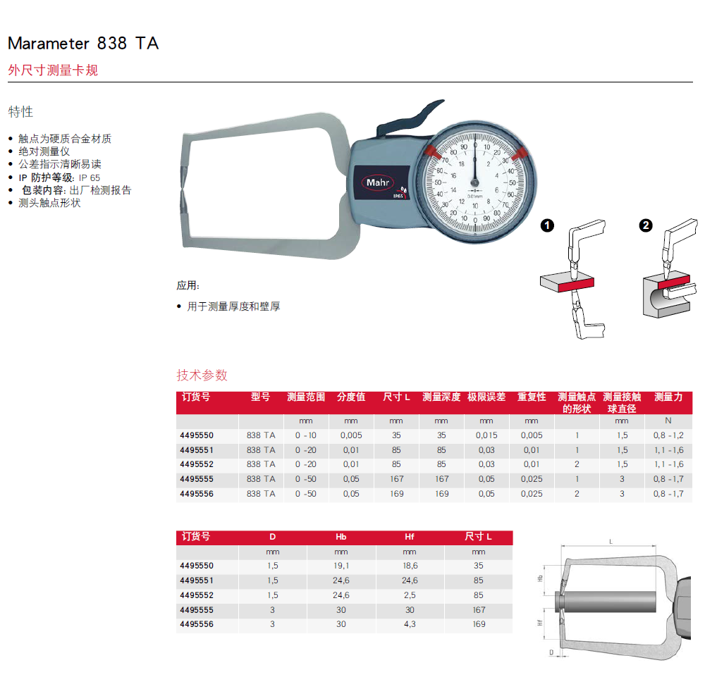 德国Mahr壁厚带表卡规Marameter 838 TA EA数显电子外径卡规异形产品厚度测量