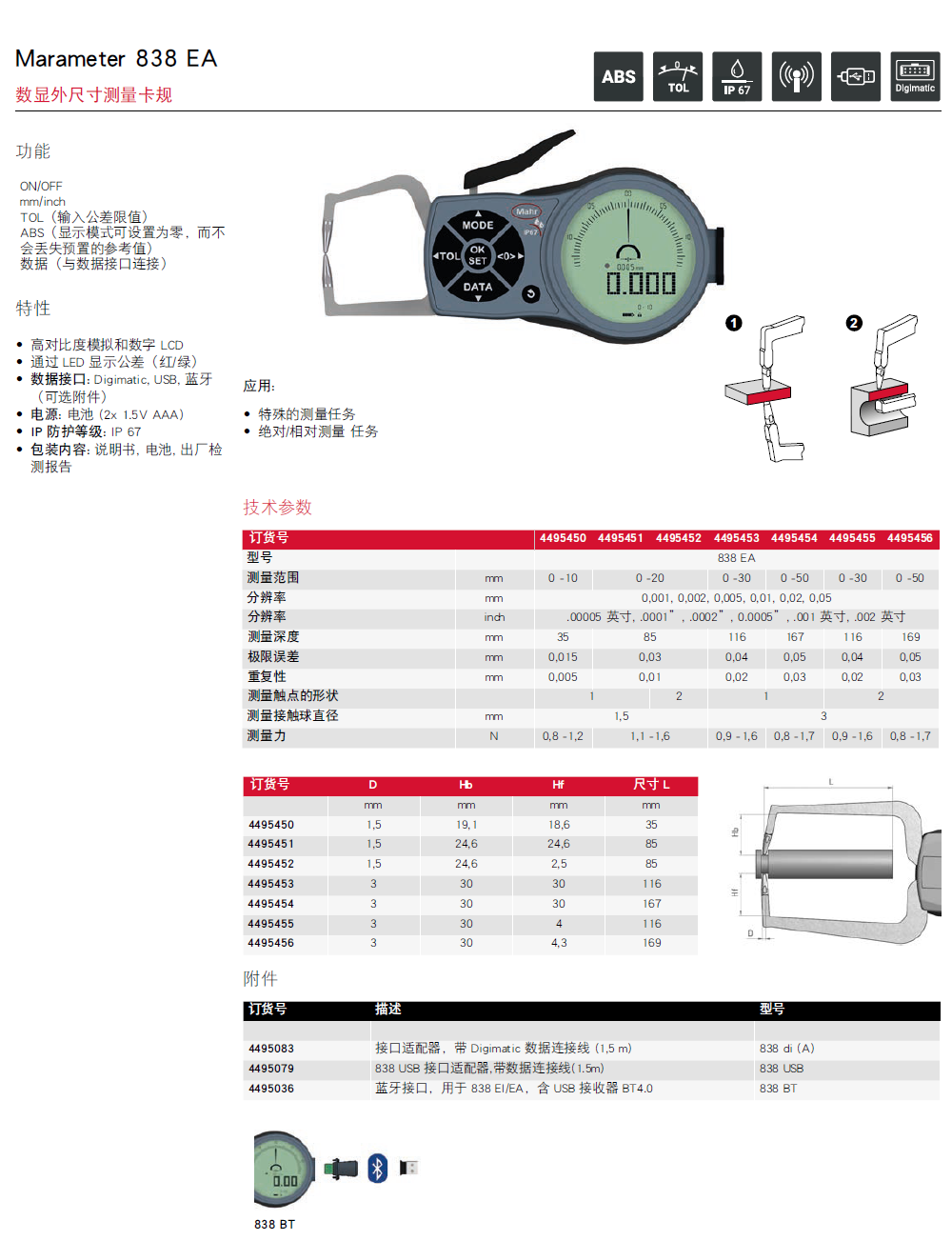 • 数据接口: Digimatic, USB, 蓝牙(可选附件)
