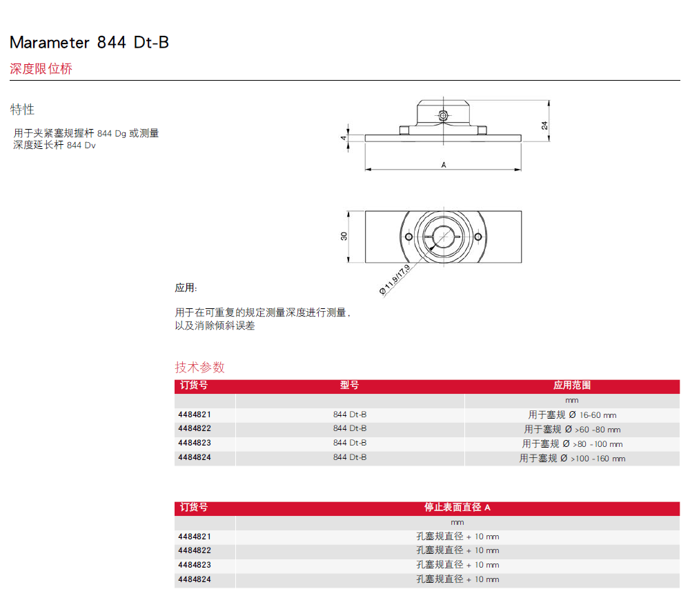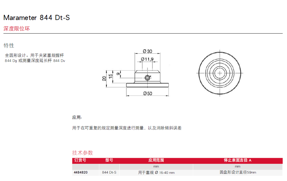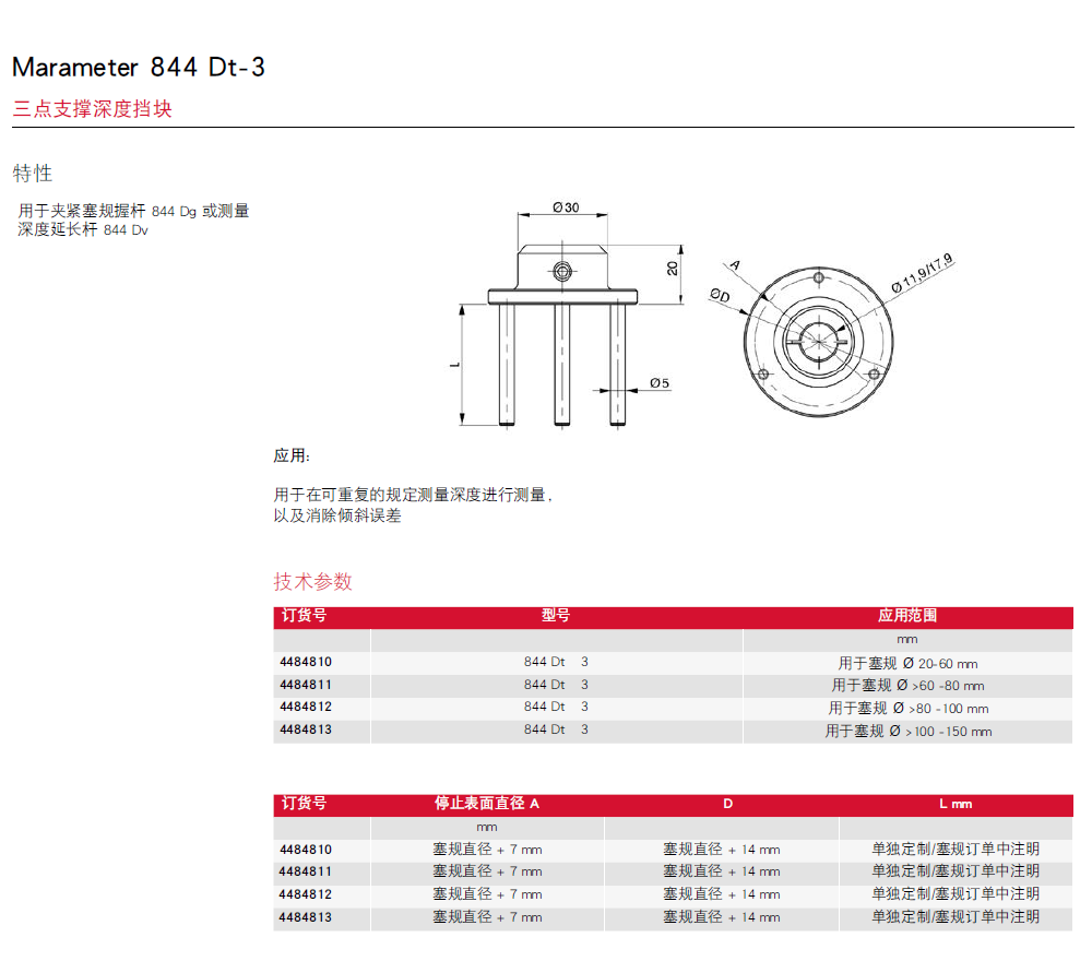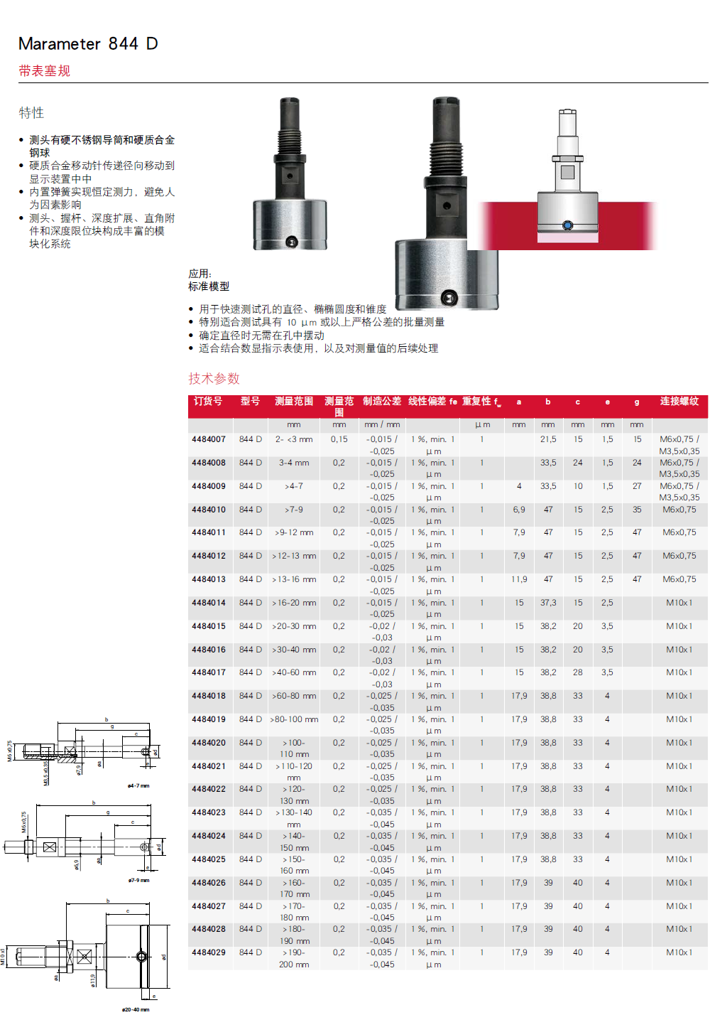 Marameter 844 D标准型带表塞规测头