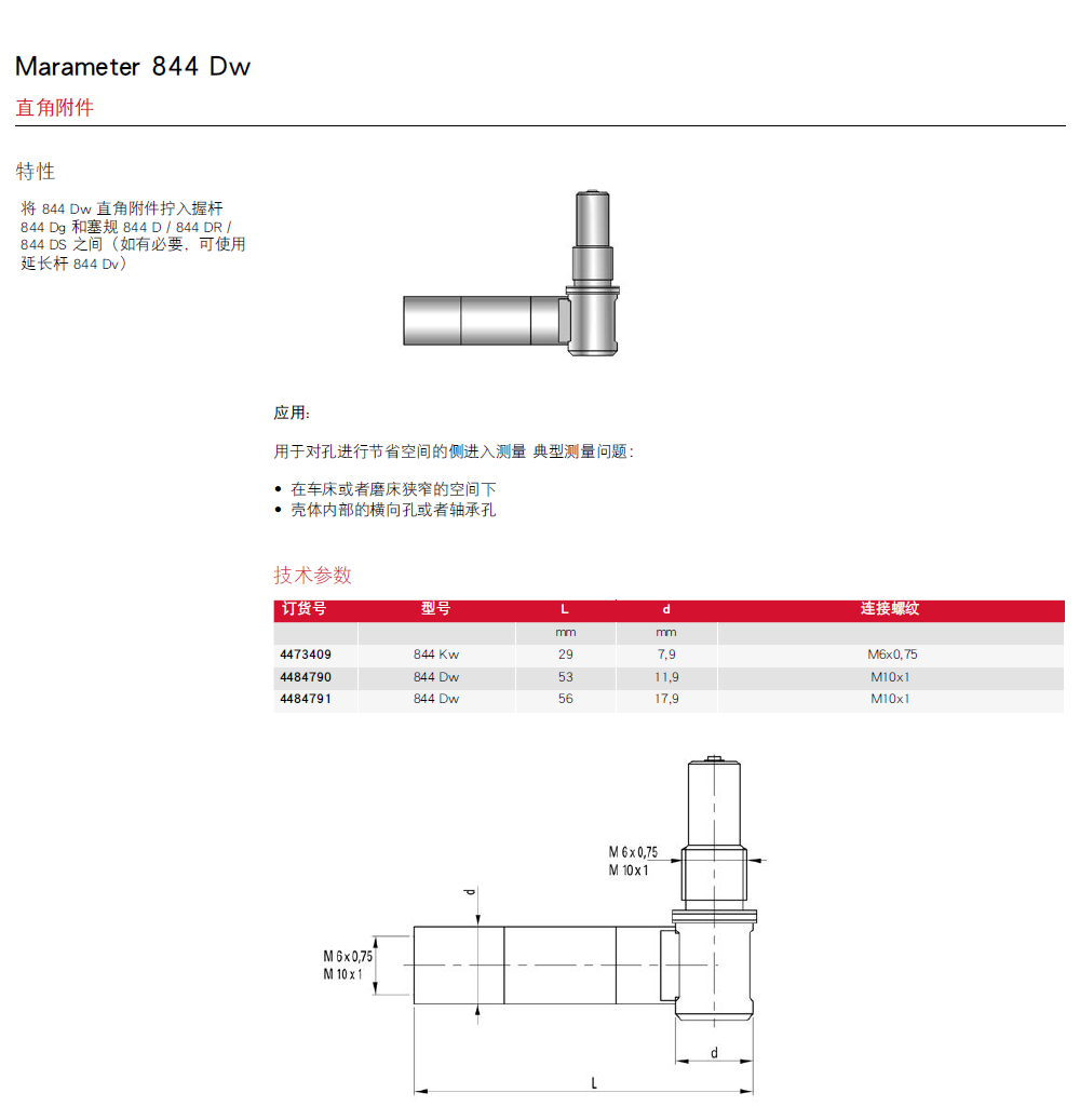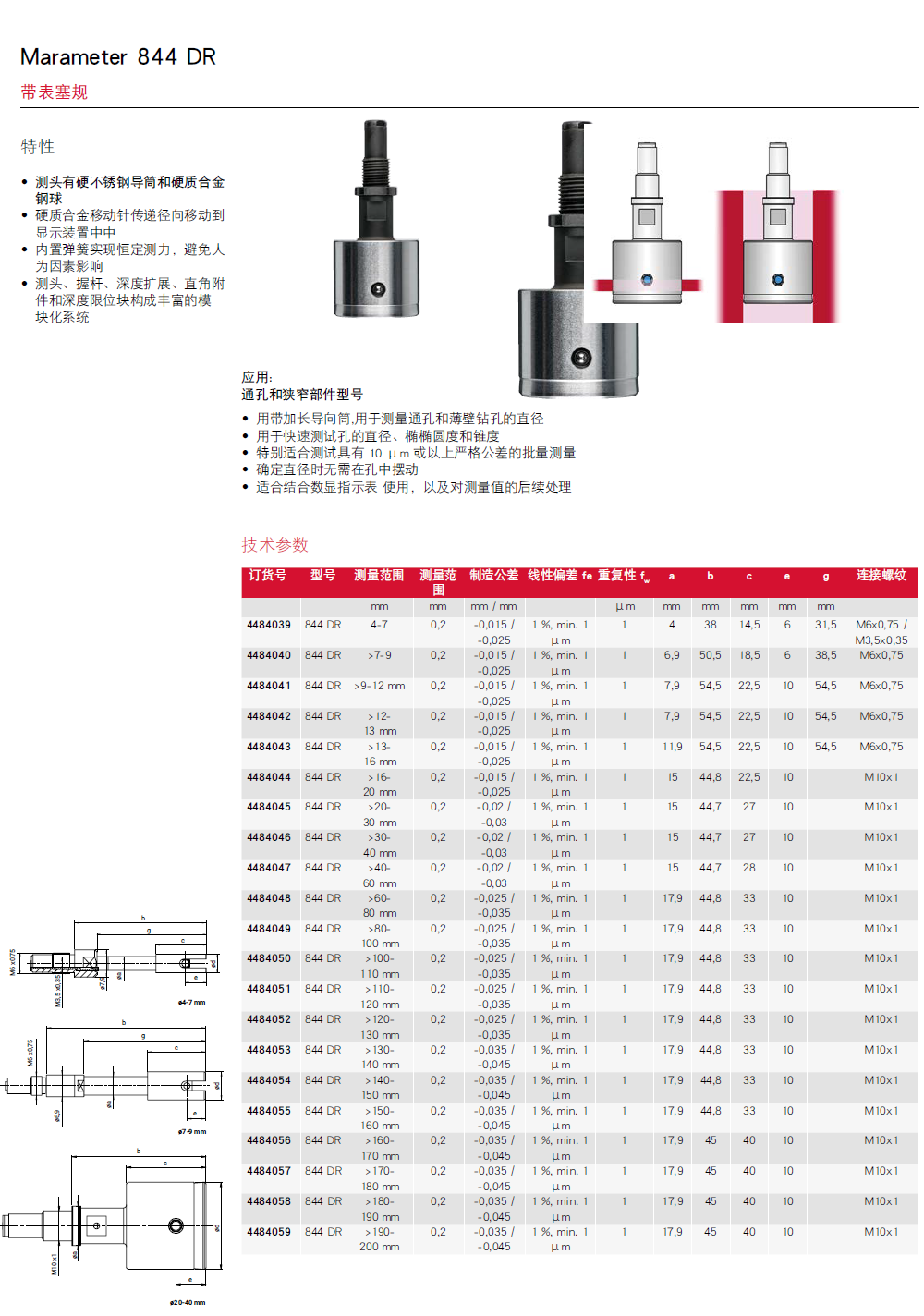 Marameter 844 DR通孔和狭窄部件型带表塞规测头