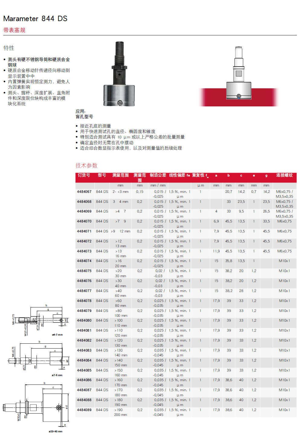 Marameter 844 DS盲孔型带表塞规测头