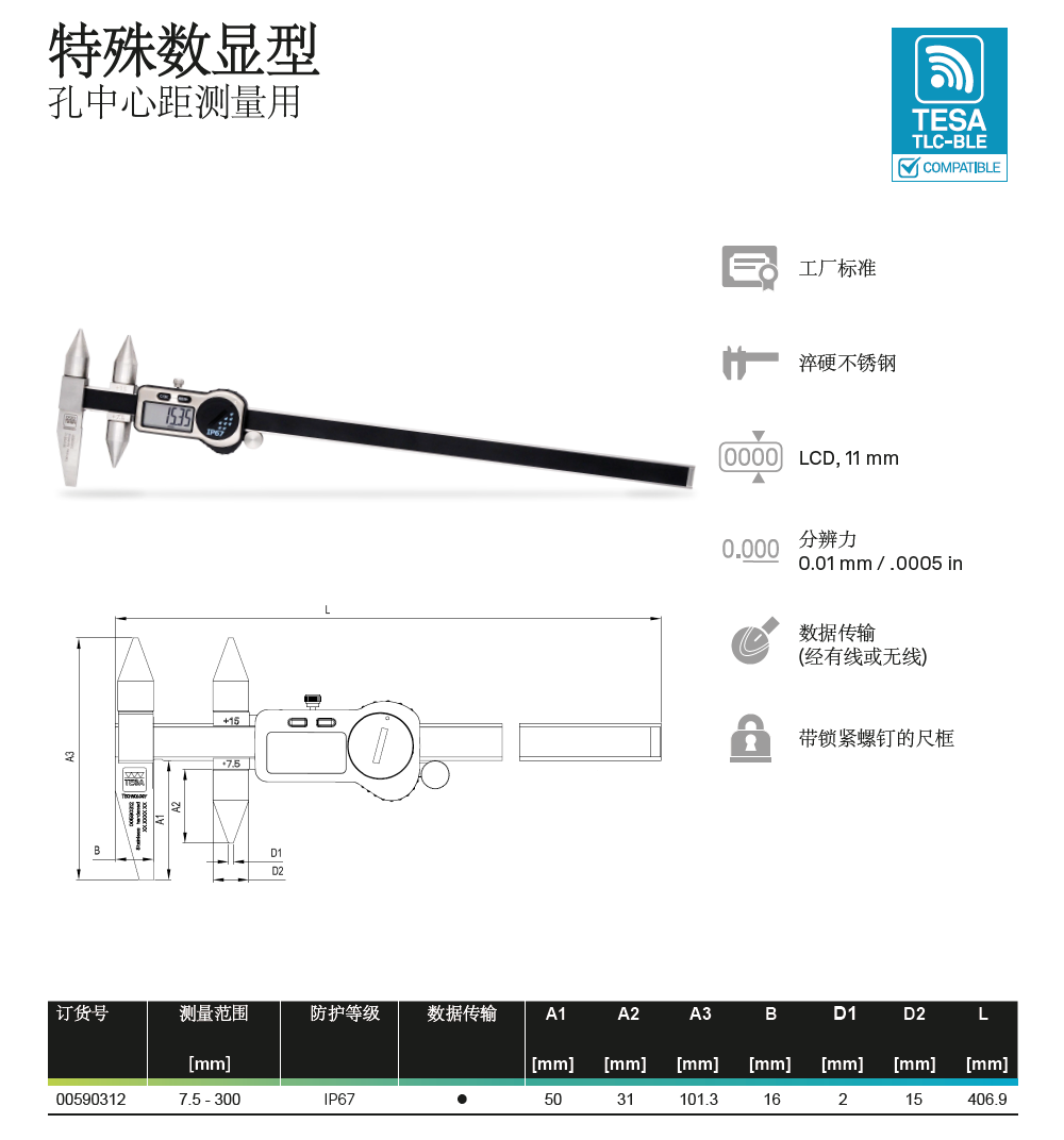 TESA瑞士原装中心距数显卡尺孔-孔中心距测量孔-边中尺距测量卡尺