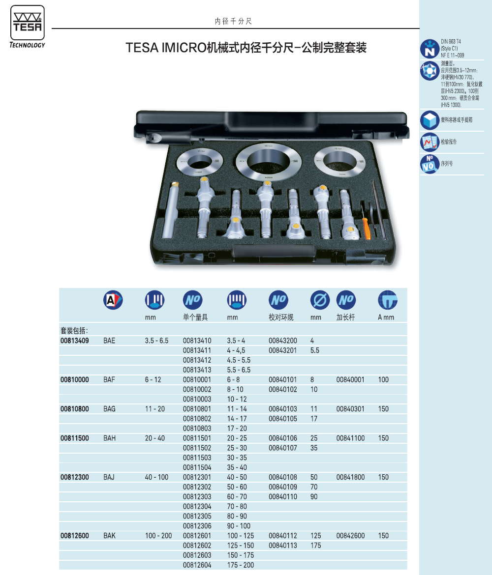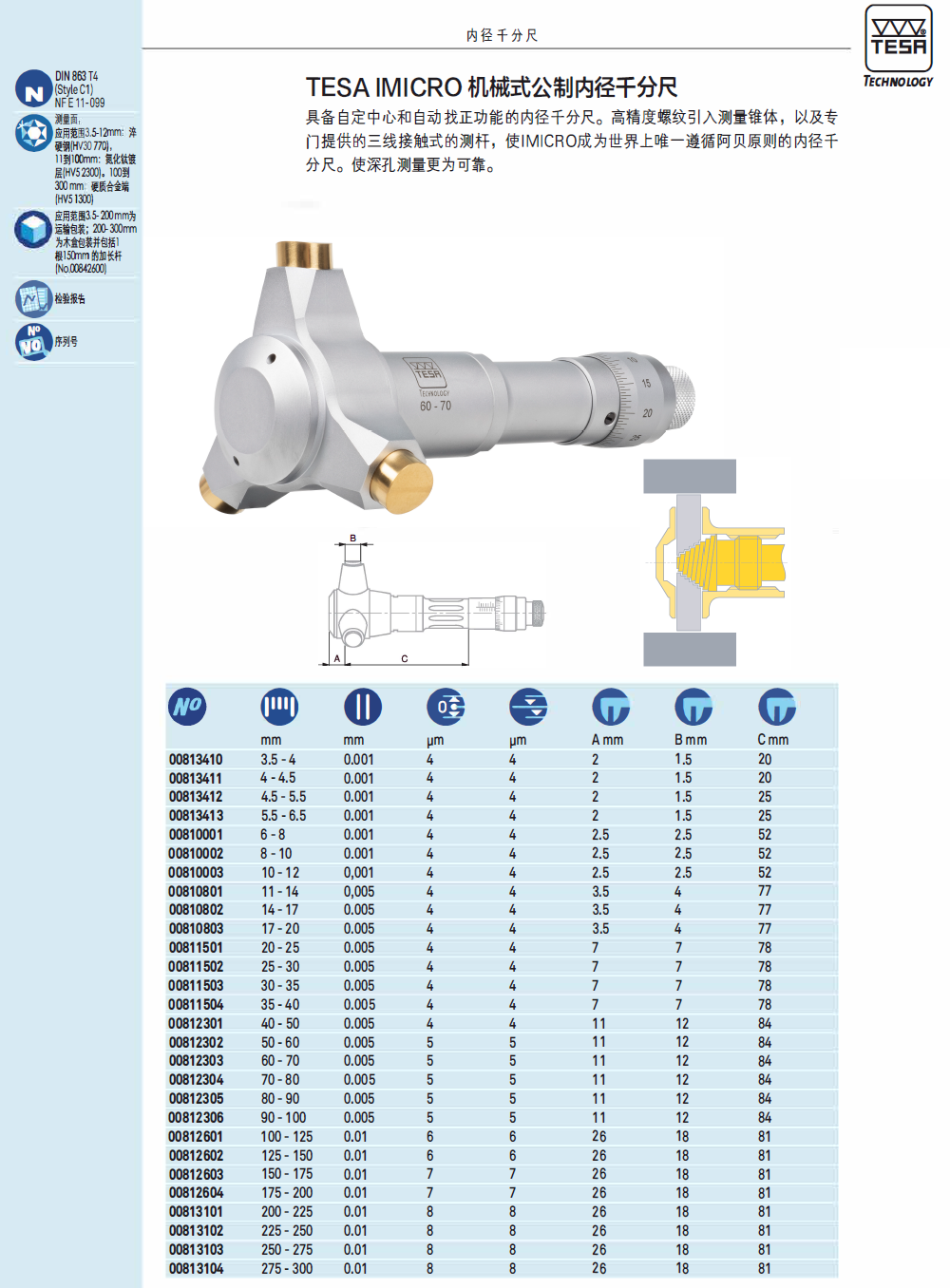 瑞士TESA机械三点内径千分尺测量范围3.5-300mm高精度三爪孔径千分尺套装