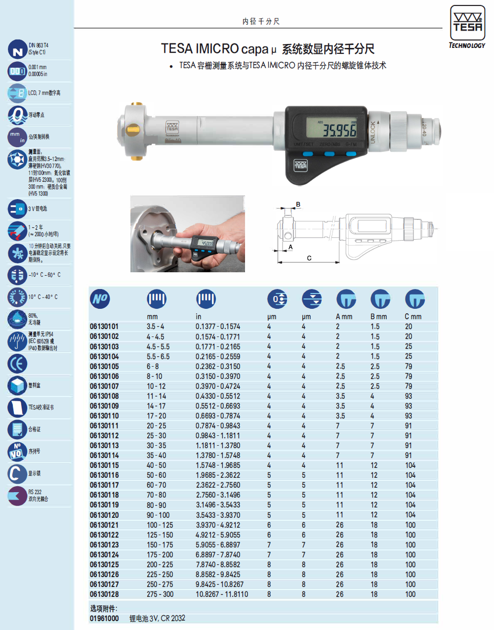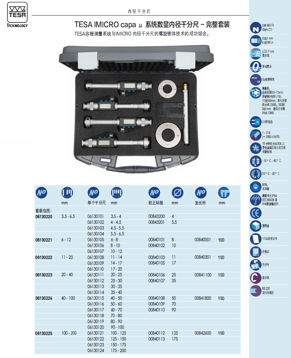 TESA天萨数显三点内径千分尺瑞士三点式内径千分尺3.5-300mm高精度内孔千分尺套装