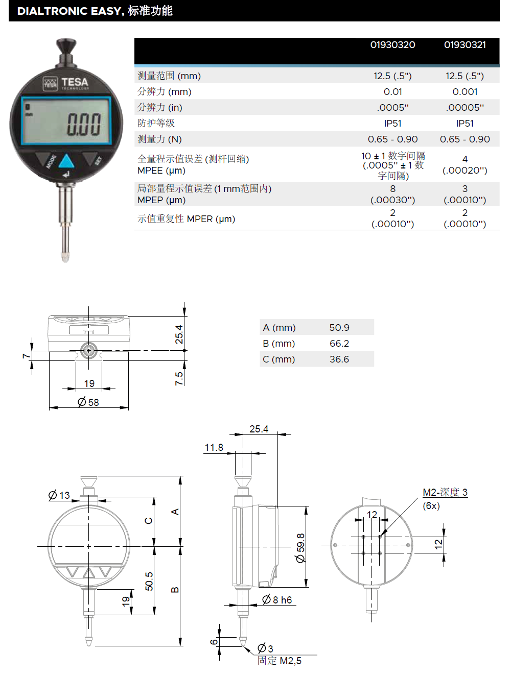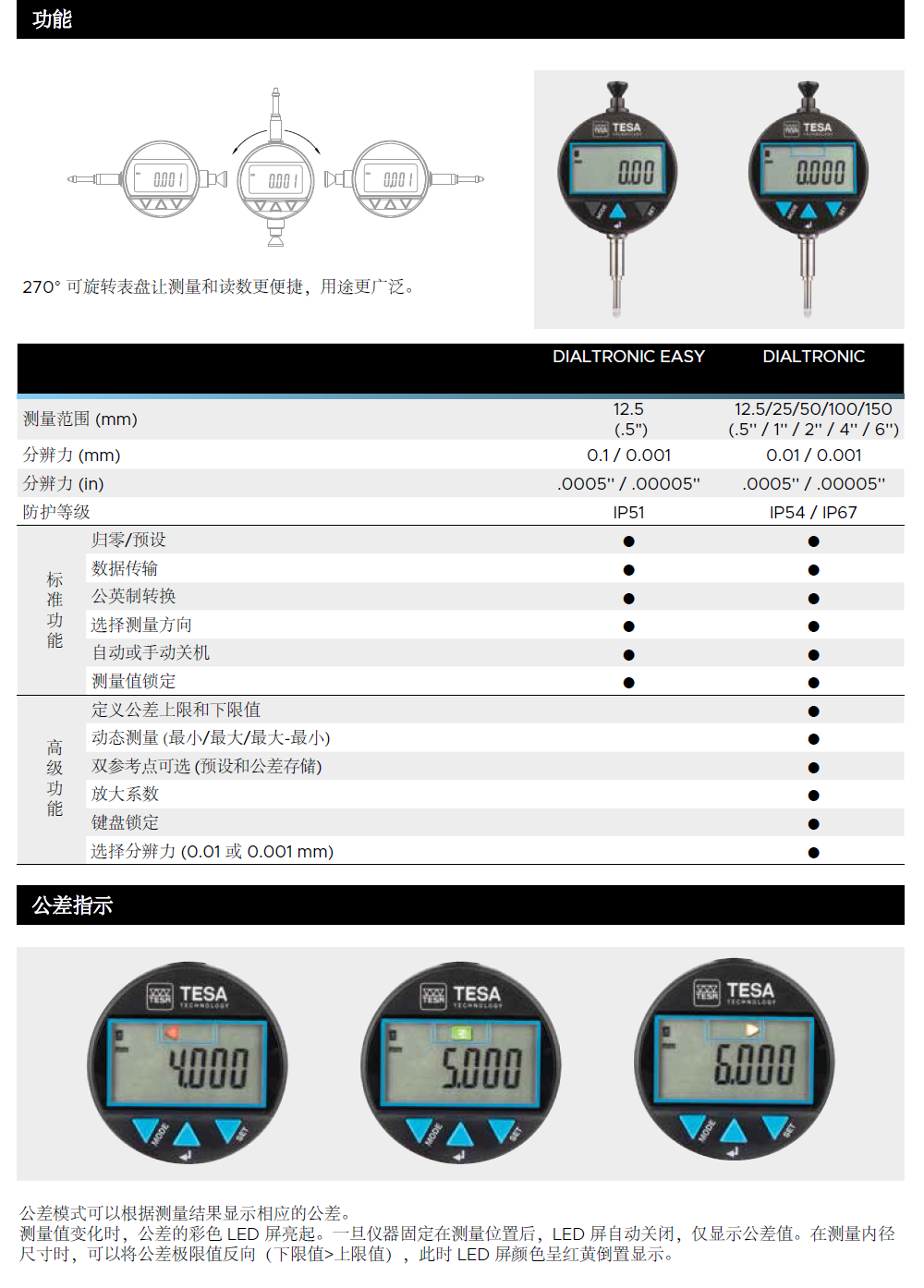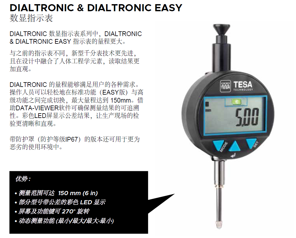 TESA瑞士天萨DIALTRONIC EASY数显指示表0-12.5*0.01mm数显百分表0.001mm数显千分表