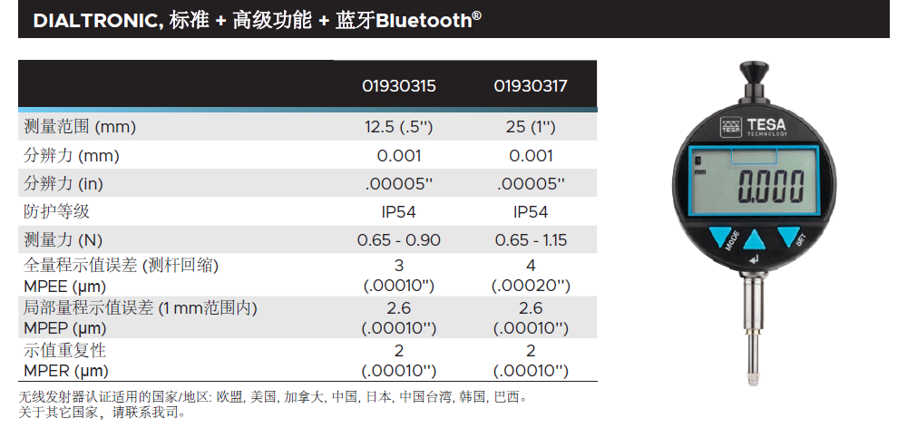 TESA瑞士无线蓝牙数显千分表DIALTRONIC无线数据传输电子千分表