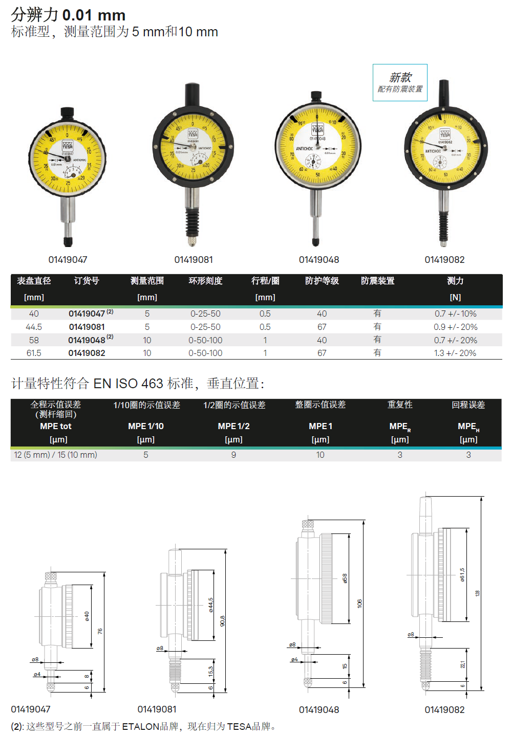 这些型号之前一直属于 ETALON品牌,现在归为 TESA品牌。