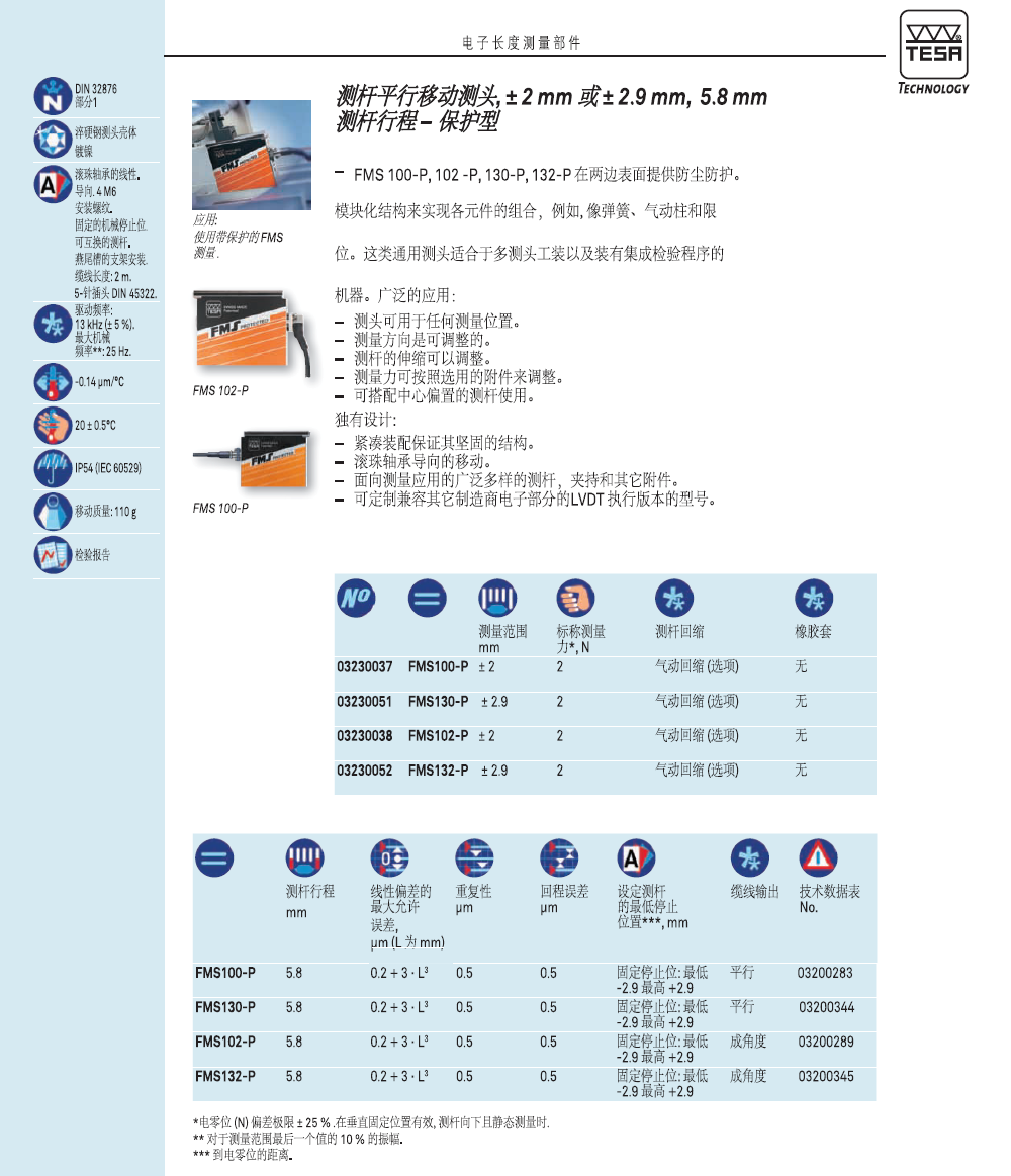 TESA瑞士特萨精密平移传感器FMS100-P 102-P 130-P高精度平行移动LVDT