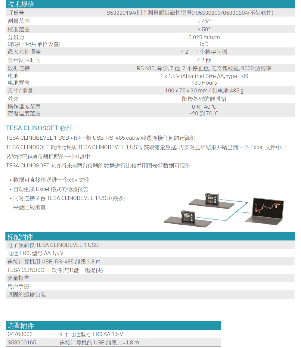 TESA CLINOBEVEL 1 USB 倾斜仪