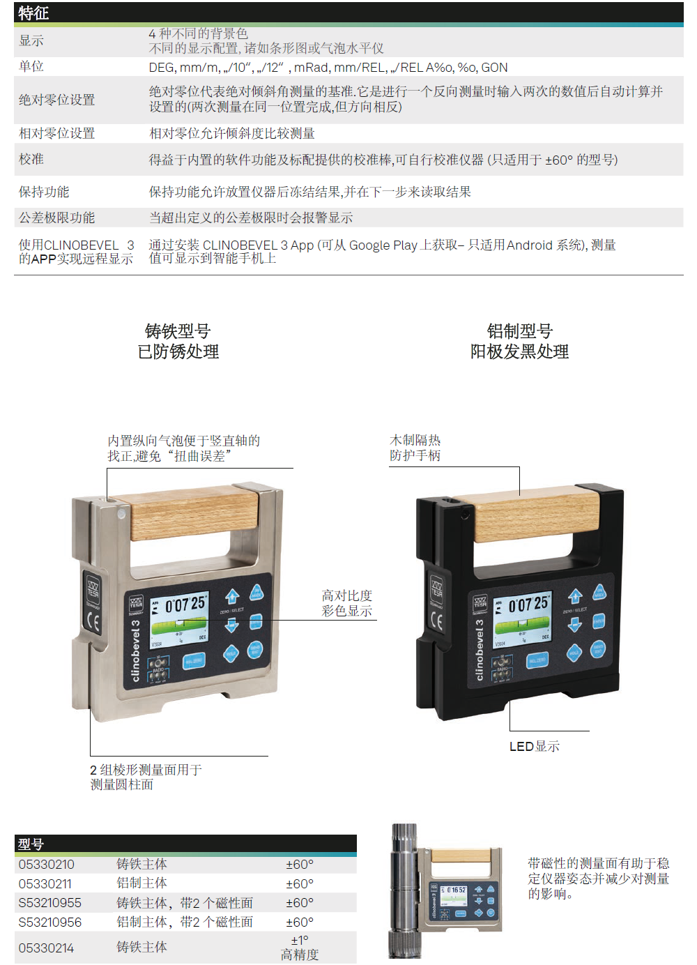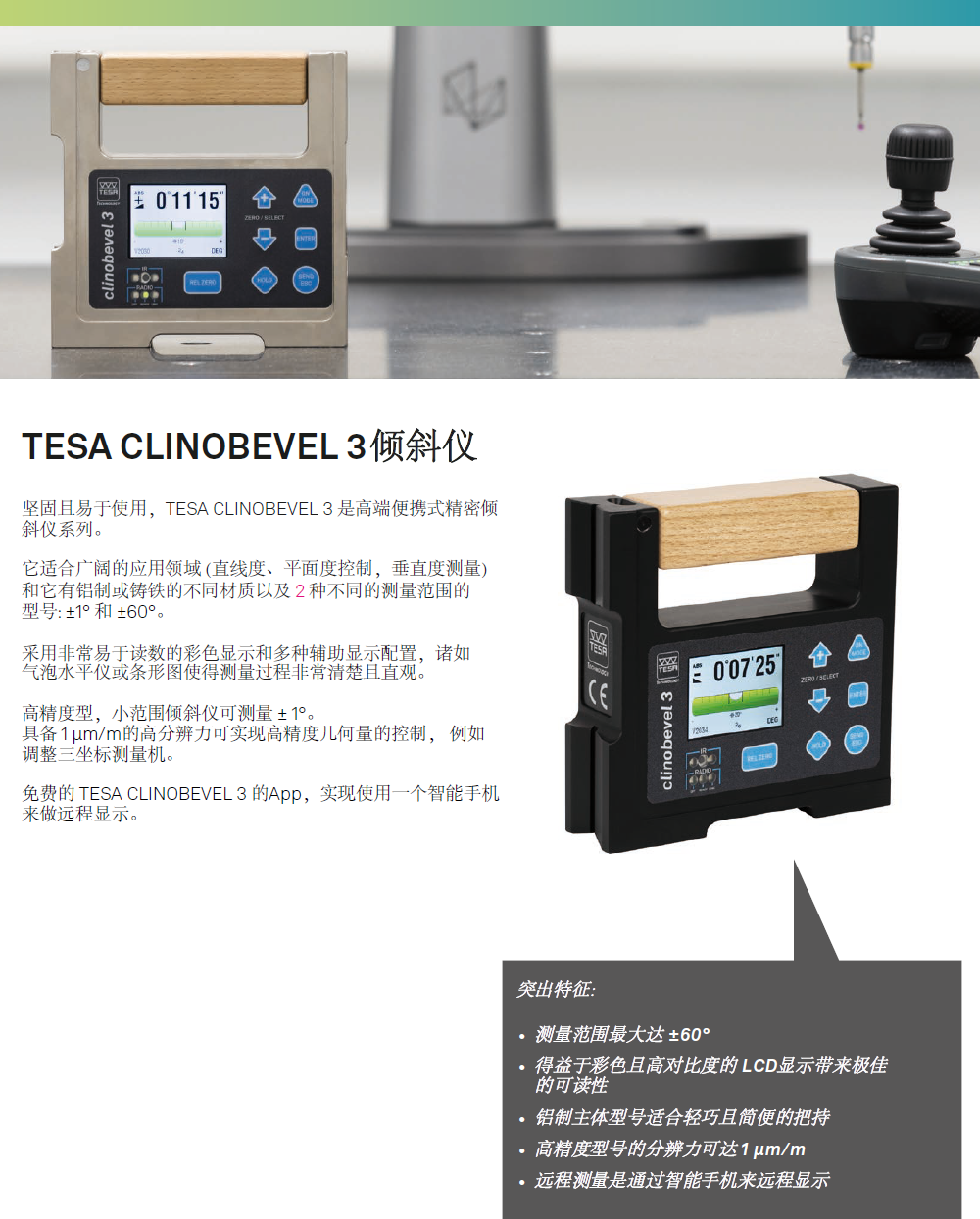 坚固且易于使用,TESA CLINOBEVEL 3 是高端便携式精密倾斜仪系列。