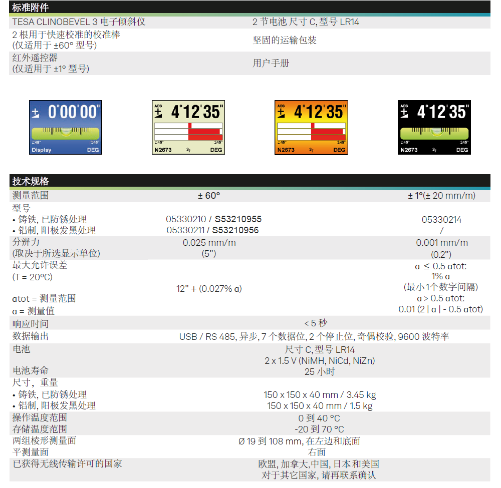 瑞士TESA高精度电子水平仪TESA CLINOBEVEL 3电子倾斜仪精密仪器设备水平检查调平