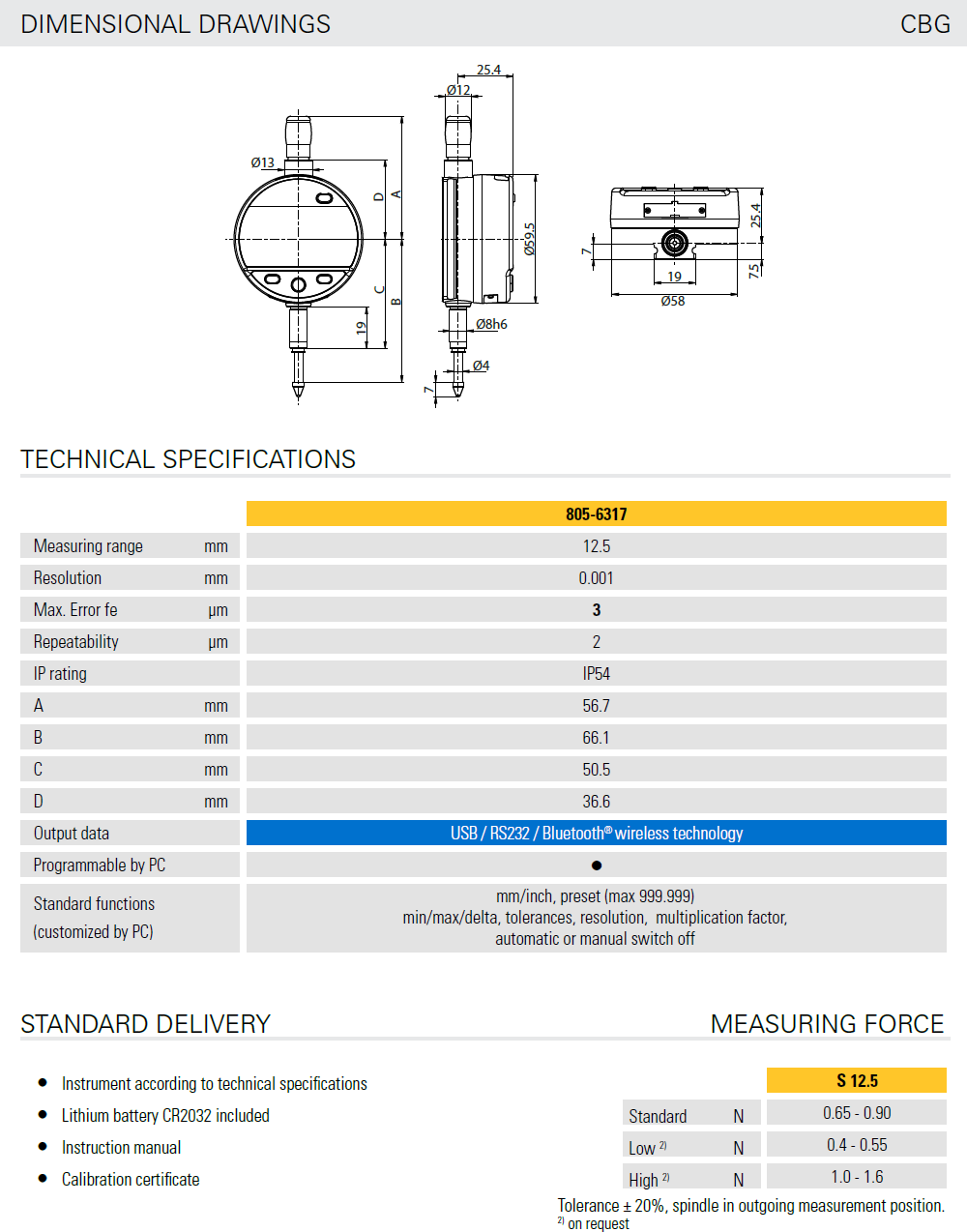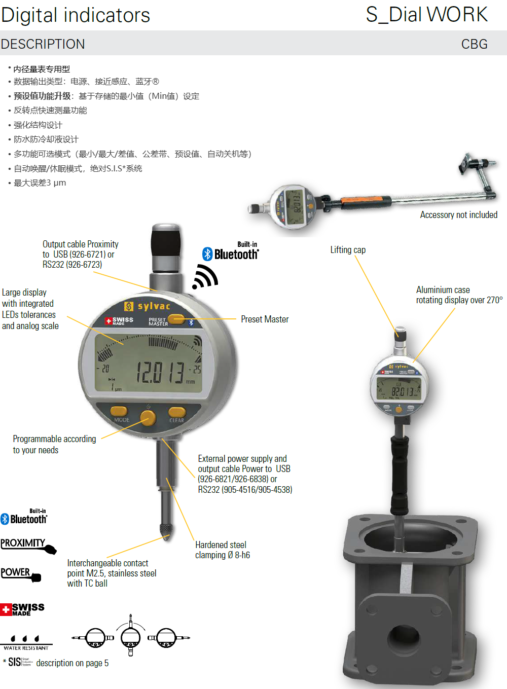 瑞士sylvac无线内径量表S_Dial WOR CBG数显量缸表无线蓝牙传输内径千分表摇表