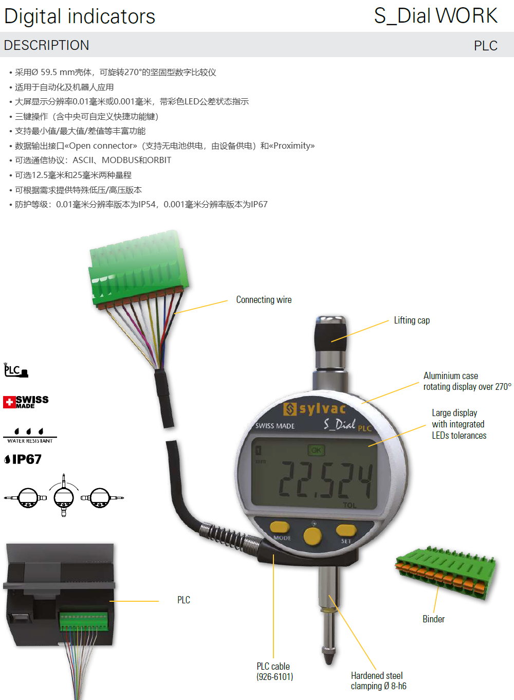 瑞士sylvac工控机千分表RS485 RS232连接PLC千分表ASCII千分表MODBUS百分表ORBIT数显表