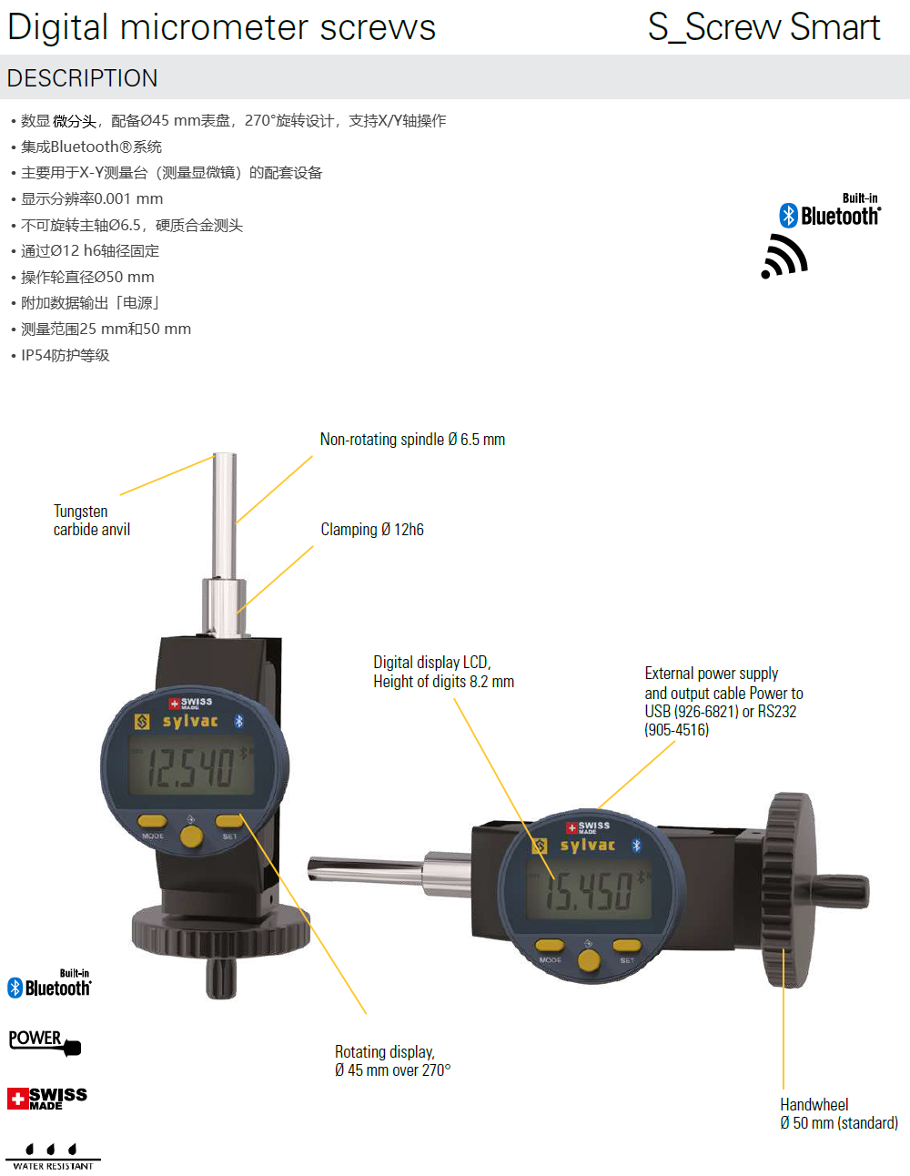 瑞士sylva Micrometer head S_Head EVO Smart数显微分头测微头,带无线蓝牙数据传输功能,803-6500,