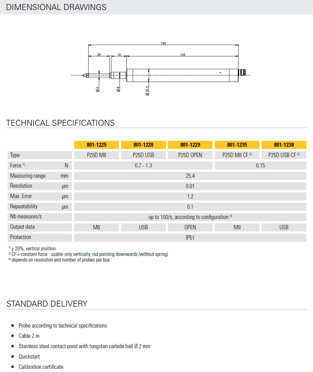 Absolute digital measuring probes P25D高精度电感量仪测头