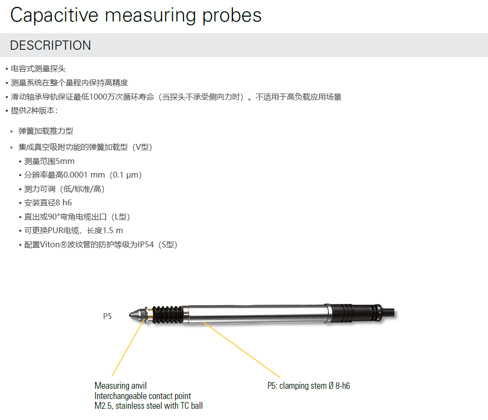 sylvac瑞士高精度位移传感器P5电容式测头高精度尺寸测量头自动化测量位移传感器