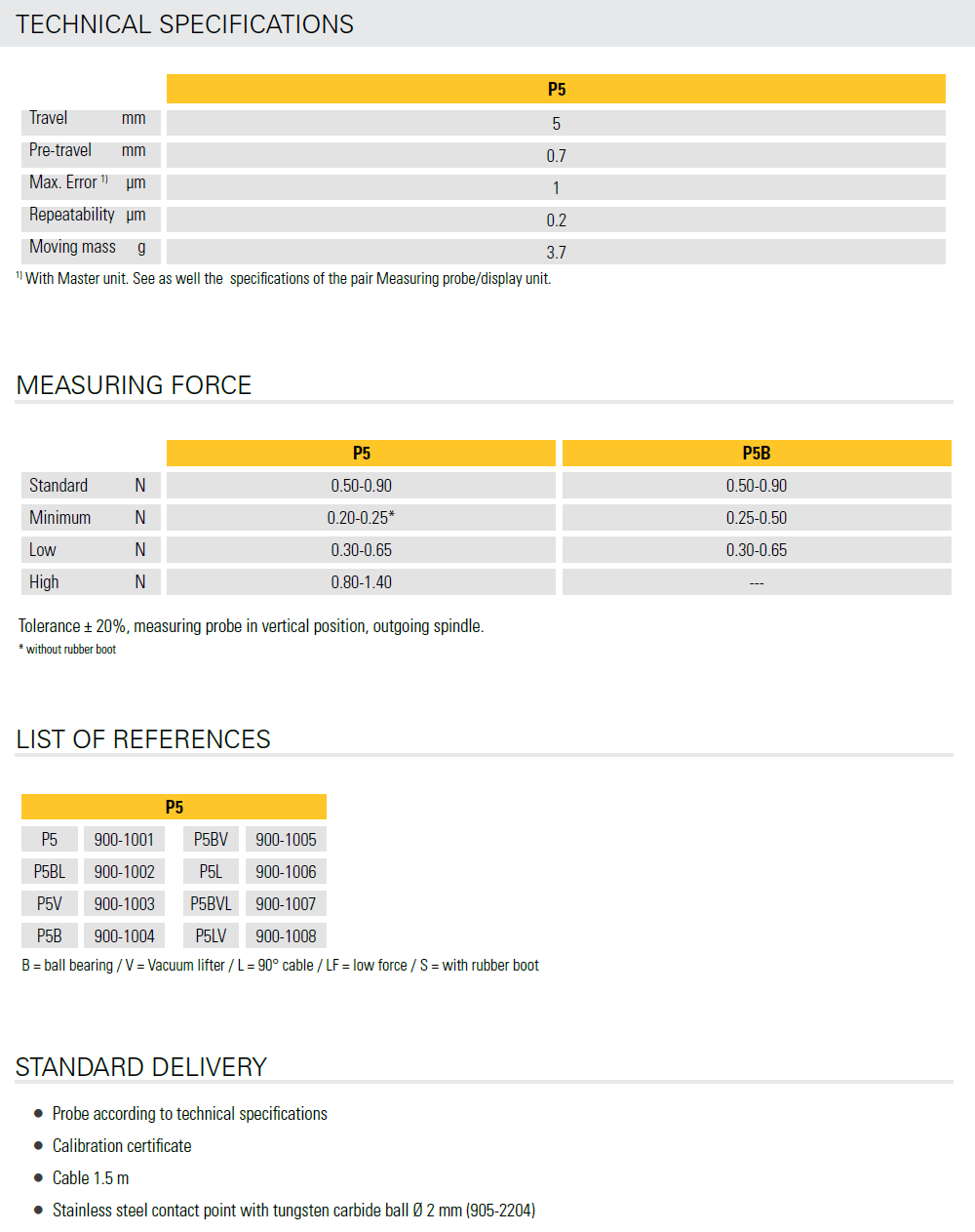 • 滑动轴承导轨保证最低1000万次循环寿命(当探头不承受侧向力时)。不适用于高负载应用场景