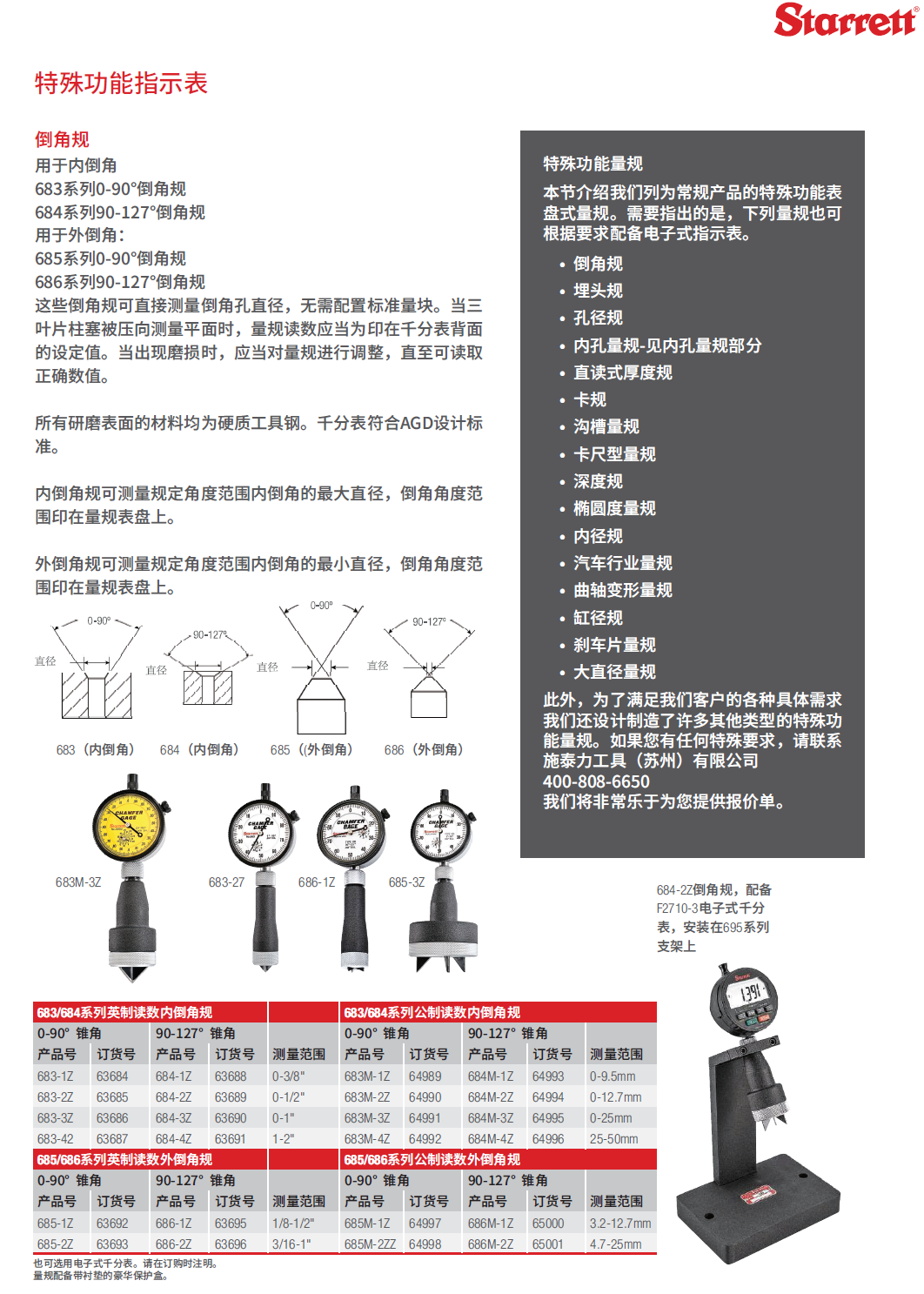 美国starrett施泰力倒角规90°内径倒角量规90-127°外倒角规内孔倒角深度规外径倒角量规