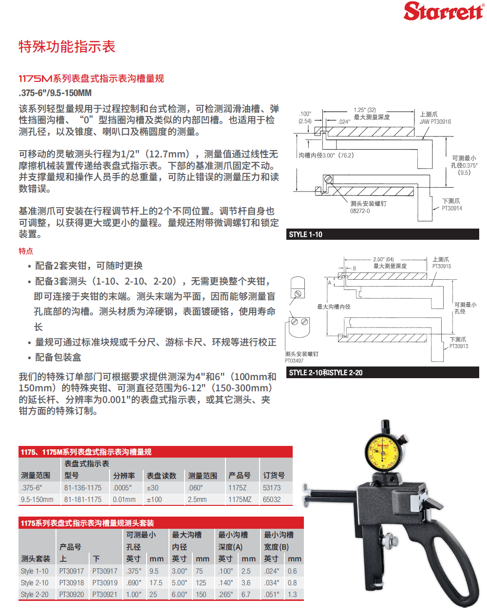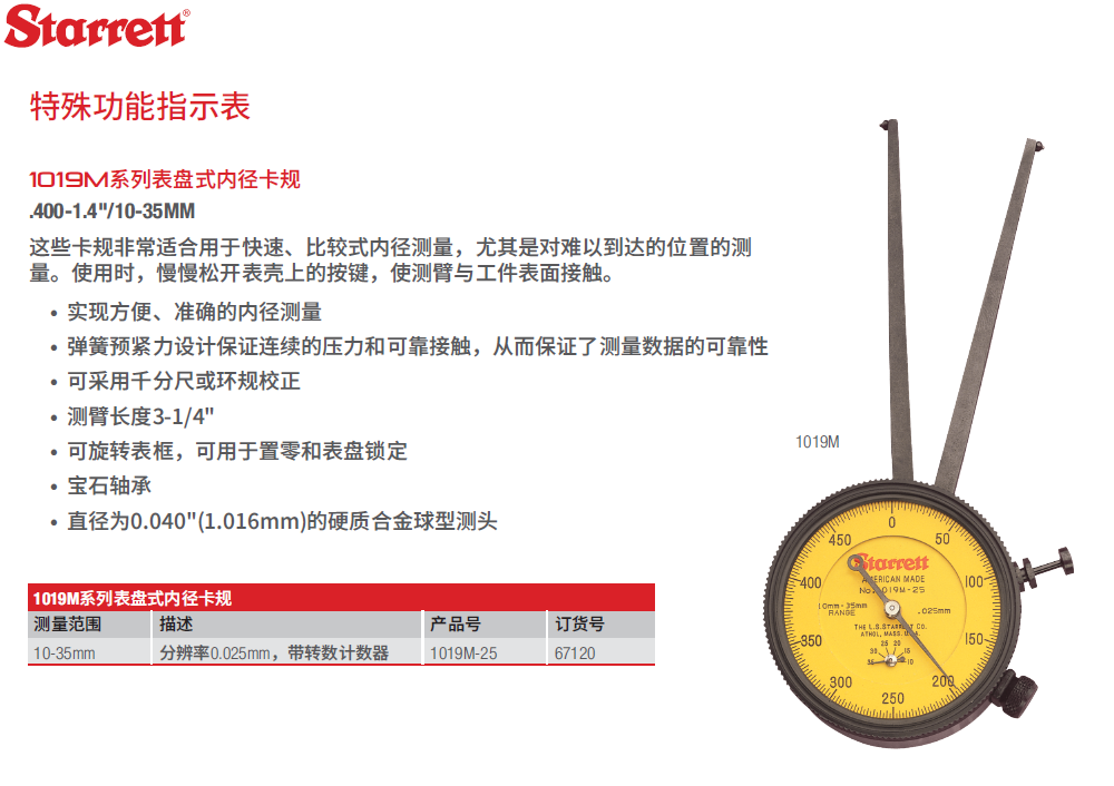 starrett施泰力1175M系列表盘式指示表沟槽量规键槽内径量规1019M系列表盘式内径卡规