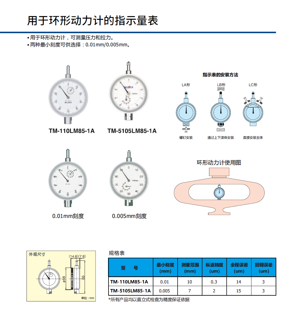 日本teclock压缩测量百分表TM-110LM85-1A变形测量百分表环形动力计量表